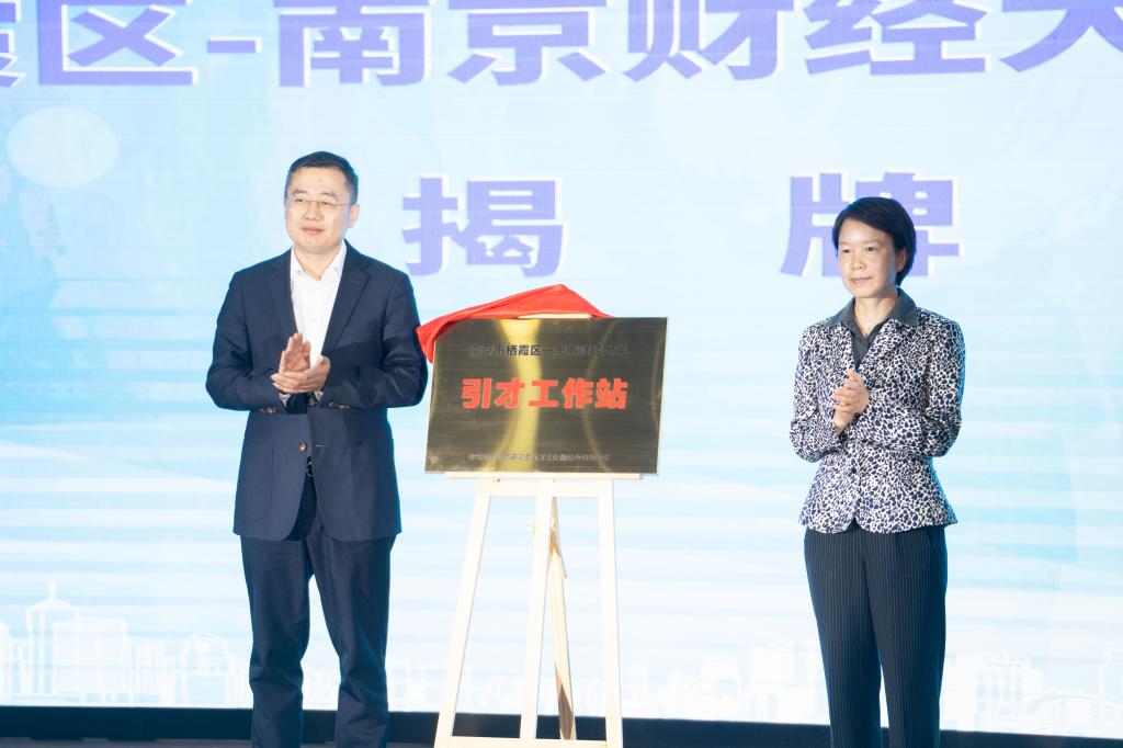 活动现场,卢静副区长与赵国栋副校长一同为“南京市栖霞区—bat365官方网站”引才工作站揭牌。工作站将更加精准服务高校青年人才创新创业、文化交流、社会融入等多方面需求,为栖霞区人才工作高质量发展增添新动能。