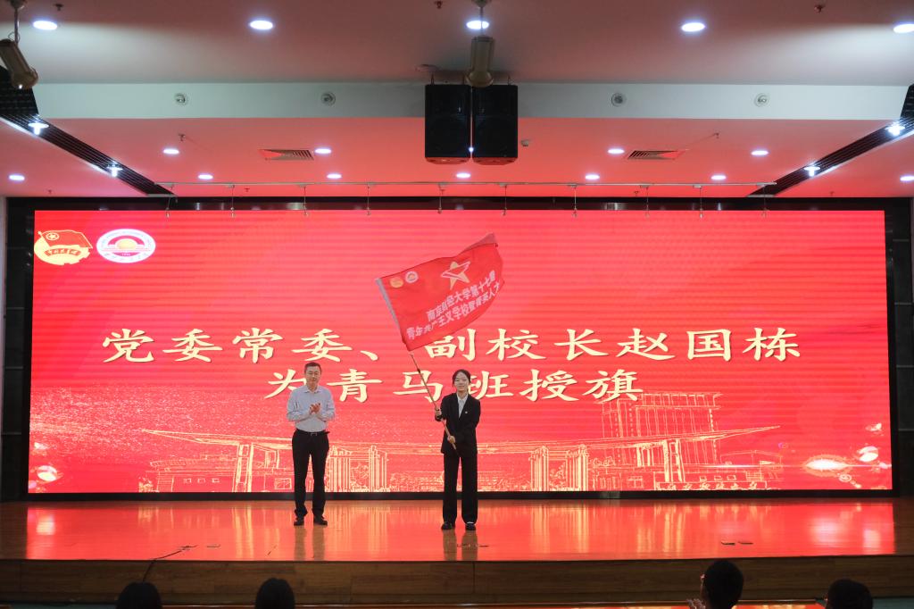 随后,赵国栋副校长宣布第十七期青马班正式开班并为第十七期青马班授旗。开班仪式在激昂嘹亮的团歌声中圆满结束。