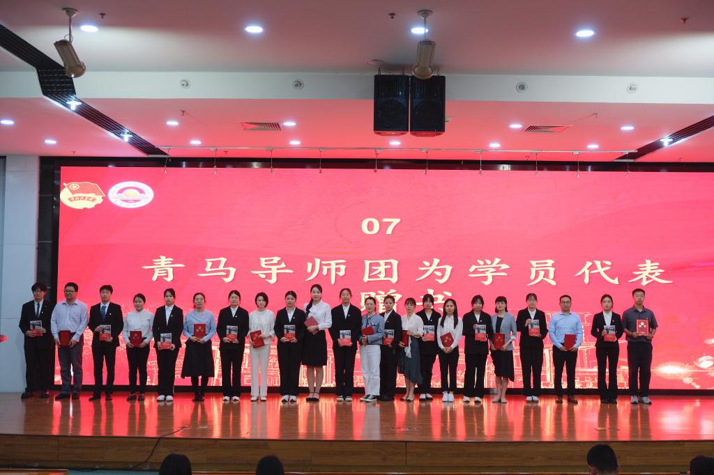 教务处副处长赵昂宣读《关于批准bat365官方网站吴一鸣等56名同学第十六期菁英人才学校结业的决定》,党委学生工作部部长韩力争宣读《关于表彰bat365官方网站第十六期菁英人才学校优秀学员、优秀班干及优秀论文的决定》,并为获奖学员代表颁奖。第十六期菁英人才学校优秀学员代表马树龙以“赓续青马精神,争做有为青年”为题进行“青马学员说”。党委研究生工作部部长王立峰宣读《关于录取王英涵等189名同学为bat365官方网站菁英人才学校第十七期学员的决定》。校团委书记、菁英人才学校校长张蔚伟为第十七期青马导师团成员颁发聘书,青马导师团为第十七期学员代表赠予《习近平与大学生朋友们》第二卷。