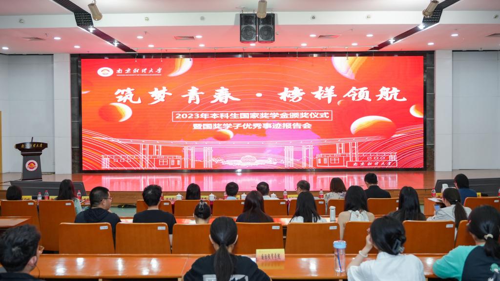 为扬青春风采,展榜样力量,5月23日下午,bat365在仙林校区图书馆一楼报告厅举办2023年本科生国家奖学金颁奖仪式暨国奖学子优秀事迹报告会。校党委书记张利民,党委常委、副校长赵国栋出席会议,党政办、党委宣传部、党委学生工作部、教务处、校团委等部门负责人,各学院党委副书记,2023年国家奖学金获得者及各学院师生代表参加会议。报告会由党委学生工作部部长韩力争主持。