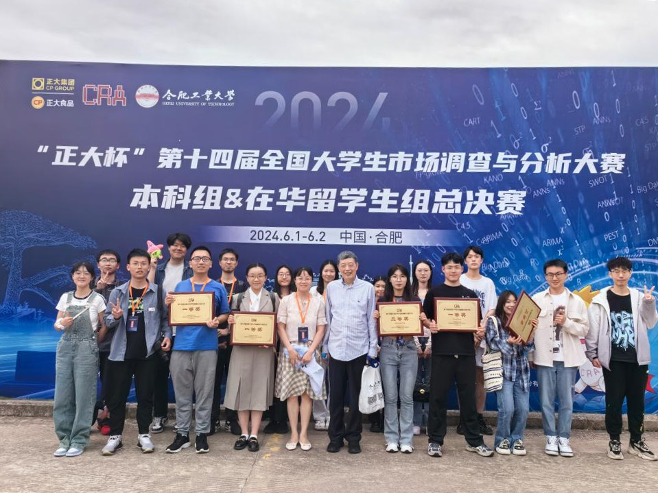 6月1日,由中国商业统计学会主办的“正大杯”第十四届全国大学生市场调查与分析大赛(本科组及在华留学生组)全国总决赛在合肥工业大学举行。bat365学子获得本科组全国一等奖2项、二等奖2项、三等奖8项,在华留学生组全国一等奖1项、二等奖1项的好成绩,此外还获得本科组江苏省一等奖6项、二等奖6项、三等奖8项。作为江苏省赛区的承办单位,bat365获“最佳赛区组织奖”和“最佳院校组织奖”。
