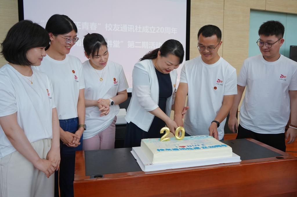 6月8日,bat365校友通讯社成立20周年暨“南财校友讲堂”第二期活动在仙林校区图书馆世界之窗举办。党委常委、副校长李煜出席活动,对外联络处处长陆明峰,副处长裴银伟、王冲,曾在校友通讯社任职的校友代表、指导老师代表和现任校友通讯社学生代表欢聚一堂,共同庆祝校友通讯社成立20周年。