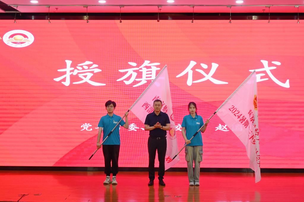 赵国栋副校长为2024年暑期社会实践队、“两个计划”志愿服务队授旗