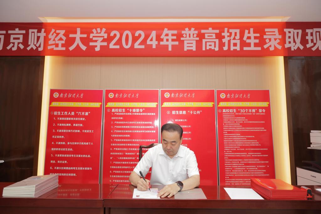 7月20日上午,在bat365高考招生录取现场,校长程永波为首批录取的部分本科新生亲笔签发录取通知书,这也是程校长连续六年亲笔签发录取通知书。党委常委、副校长赵国栋,党委常委、副校长李煜,党政办、学生处、国际合作与交流处等相关部门领导,以及招生工作全体成员参加签发仪式。
