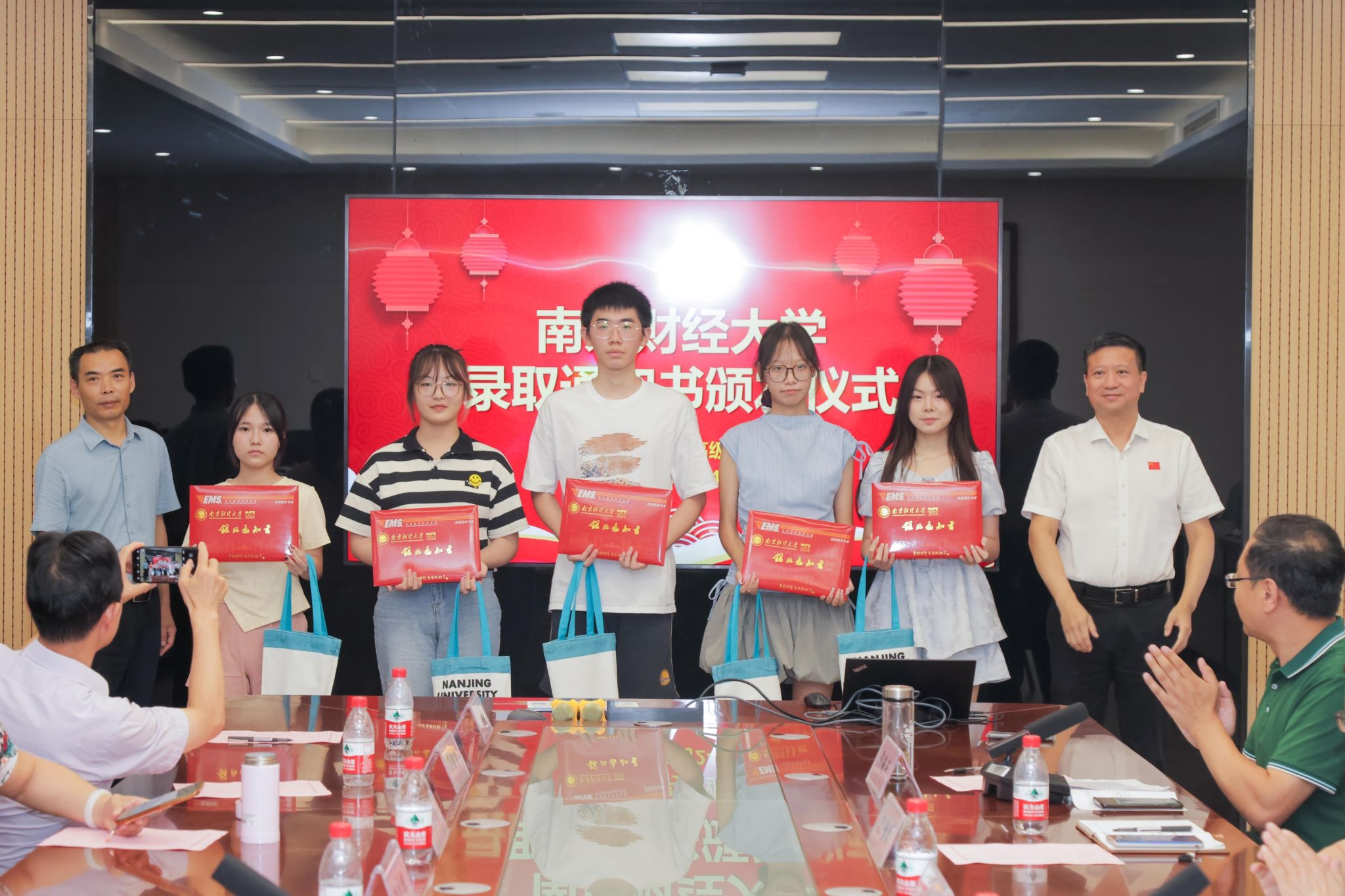 7月24日上午,校党委书记张利民带队赴江宁高级中学为今年考取bat365的29名新生现场发放录取通知书。校党委常委、副校长赵国栋,江宁高级中学校长张格波、副校长陈立军、纪委书记孔素琴出席仪式。校党政办主任郑锷,党委学生工作部部长、学生处处长韩力争,工商管理学院党委书记张杰,工商管理学院院长万绪才,党委宣传部副部长秦韶华,工商管理学院党委副书记尹海燕、学工办主任邱祥霞,江宁高级中学办公室主任彭功军、24届高三年级主任许铁丰、高一年级主任周复忠以及考取bat365的29名同学参加仪式。仪式由许铁丰主任主持。