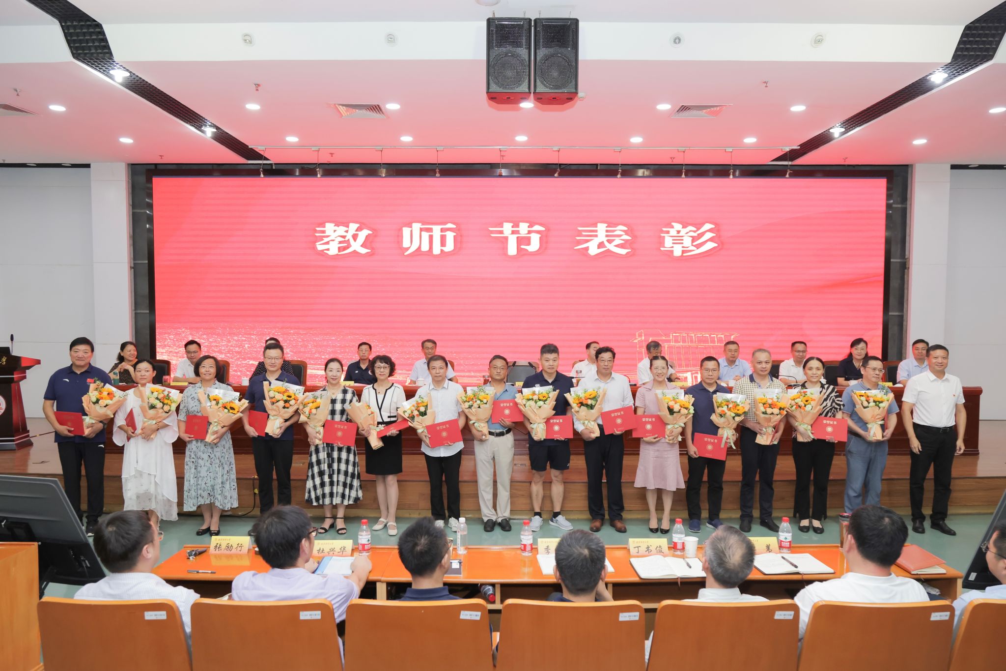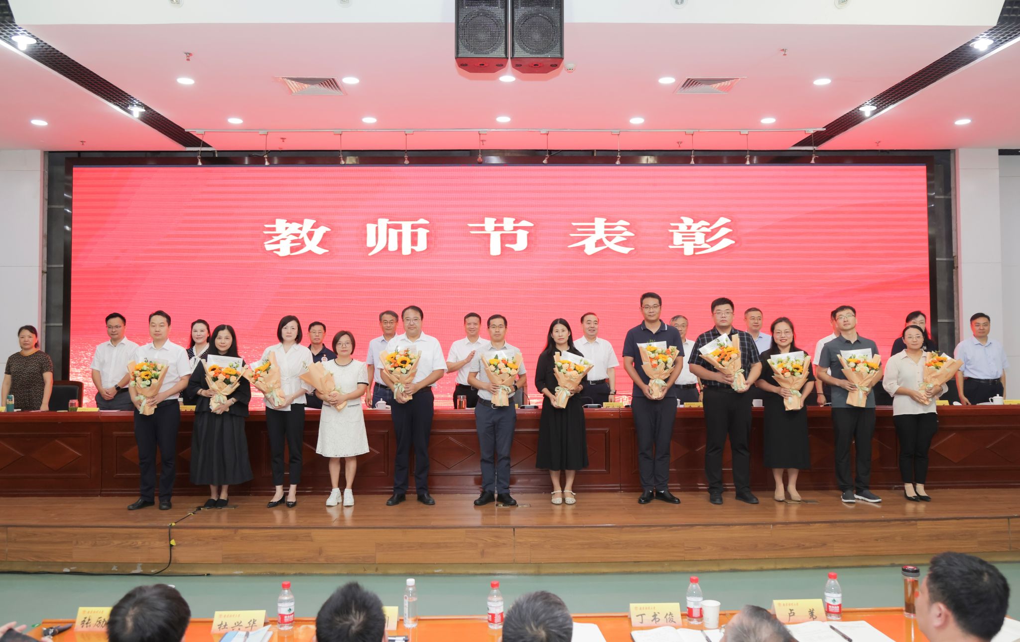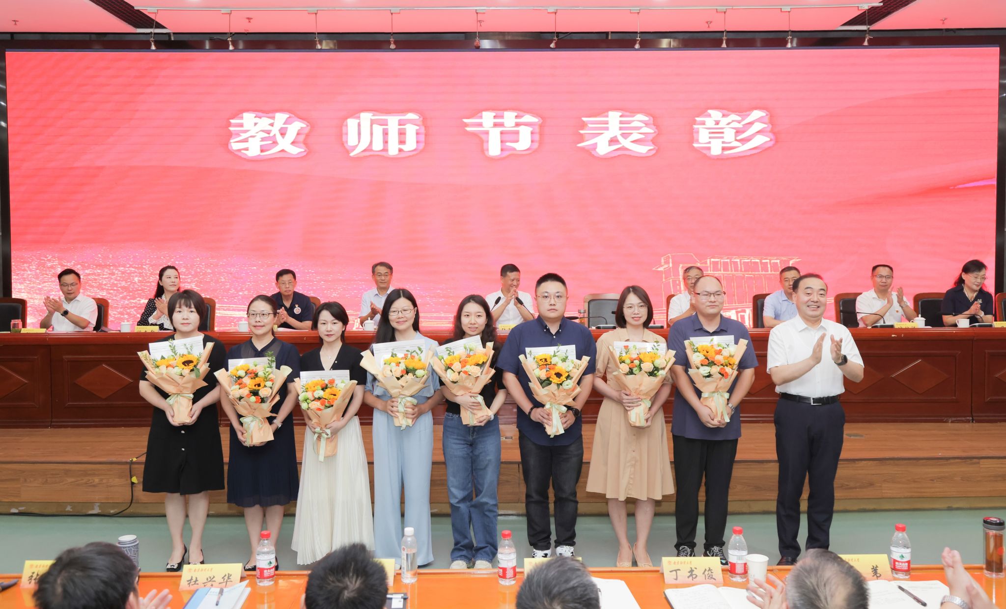 主席台领导为近一年来取得突出业绩的教师代表颁奖。