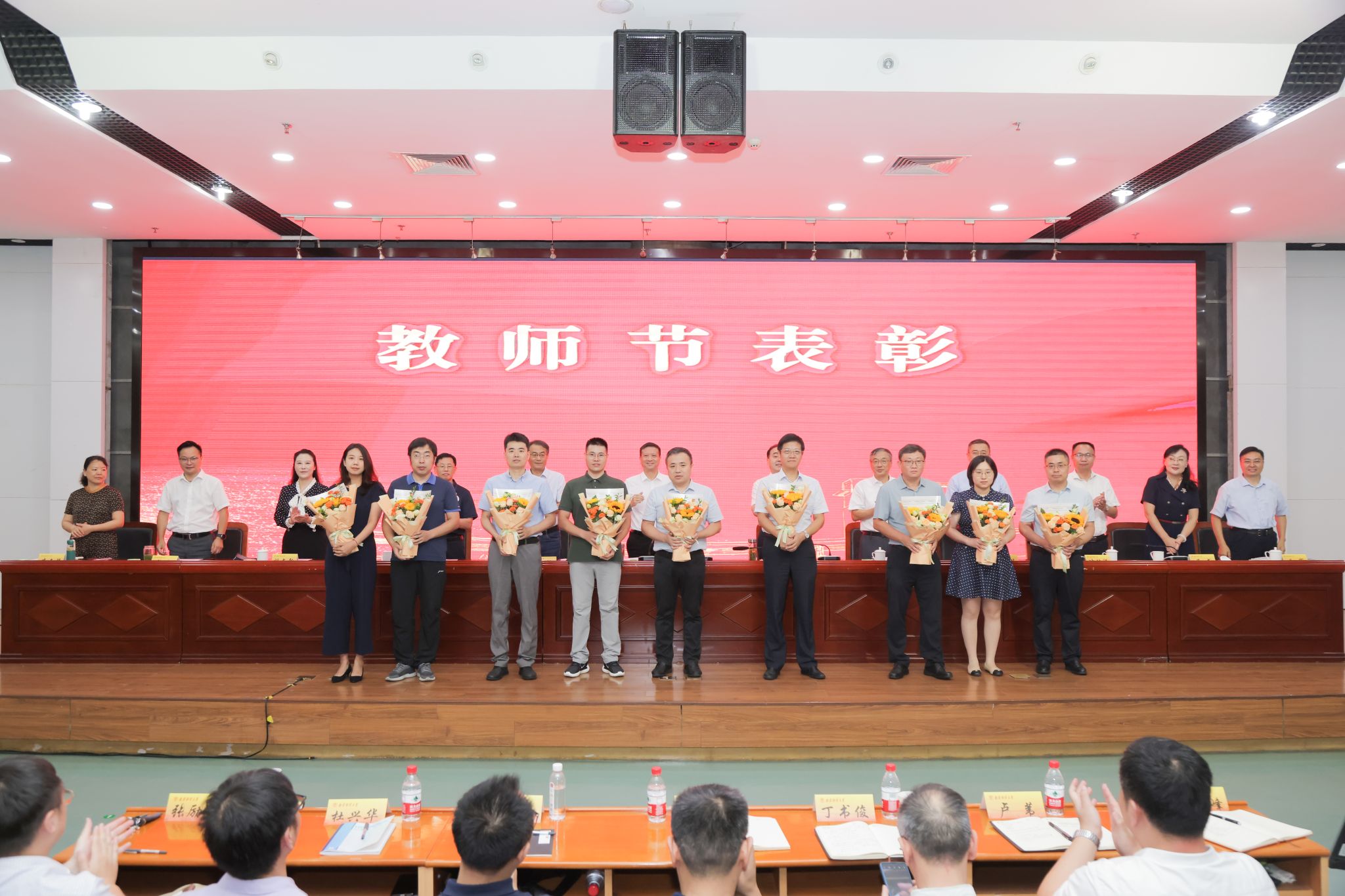 8月31日上午,bat365在仙林校区图书馆报告厅召开教师节表彰大会。全体校领导,全体党委委员、纪委委员,全体中层干部,资产经营有限公司主要负责人,区级以上“两代表一委员”,民主党派代表,教职工代表,特约监察员代表参加会议。会议由校党委书记张利民主持。