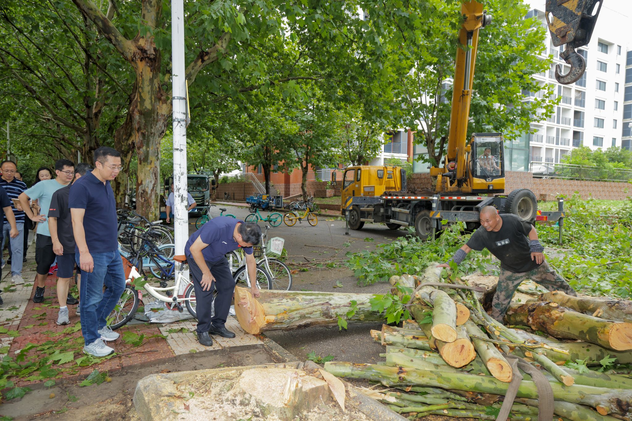 9月16日晚,台风“贝碧嘉”进入南京,狂风和暴雨叠加,对学校建筑设施、树木造成了不同程度的破坏。9月17日一早,校党委书记张利民,党委常委、副校长赵国栋,党委常委、副校长李煜分别带队实地察看仙林校区和桥头校区台风受灾情况,指导台风后校园恢复工作。党政办主任郑锷,研究生院院长沈永建,保卫处处长刘伟华,后勤基建处处长杜金华,党委宣传部副部长秦韶华,后勤基建处副处长王成杰,红山学院党委副书记、副院长王晨婷等陪同检查。