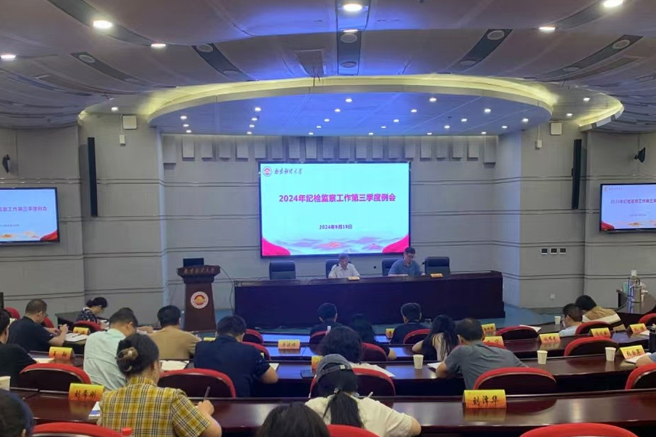 9月19日下午,bat365在仙林校区行政楼二楼报告厅召开2024年纪检监察工作第三季度例会。党委常委、纪委书记、派驻监察专员李茜出席会议并讲话。全体校纪委委员、各二级党组织纪检委员(纪委书记)、基层党支部纪检委员代表、全体专职纪检监察干部参加会议。会议由纪委副书记杜兴华主持。