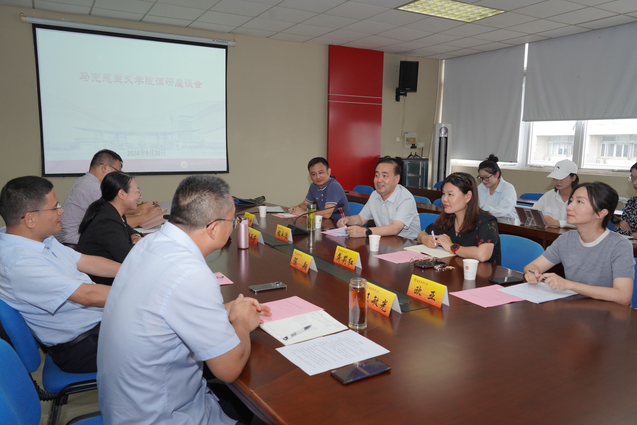 9月26日上午,校长程永波赴马克思主义学院主持召开现场办公会暨宣讲党的二十届三中全会和全国教育大会精神专题课。马克思主义学院领导班子全体成员、教师代表及研究生代表,党政办副主任沈国彬,党委宣传部副部长龚莉红,党政办秘书科科长欧亚参加会议。