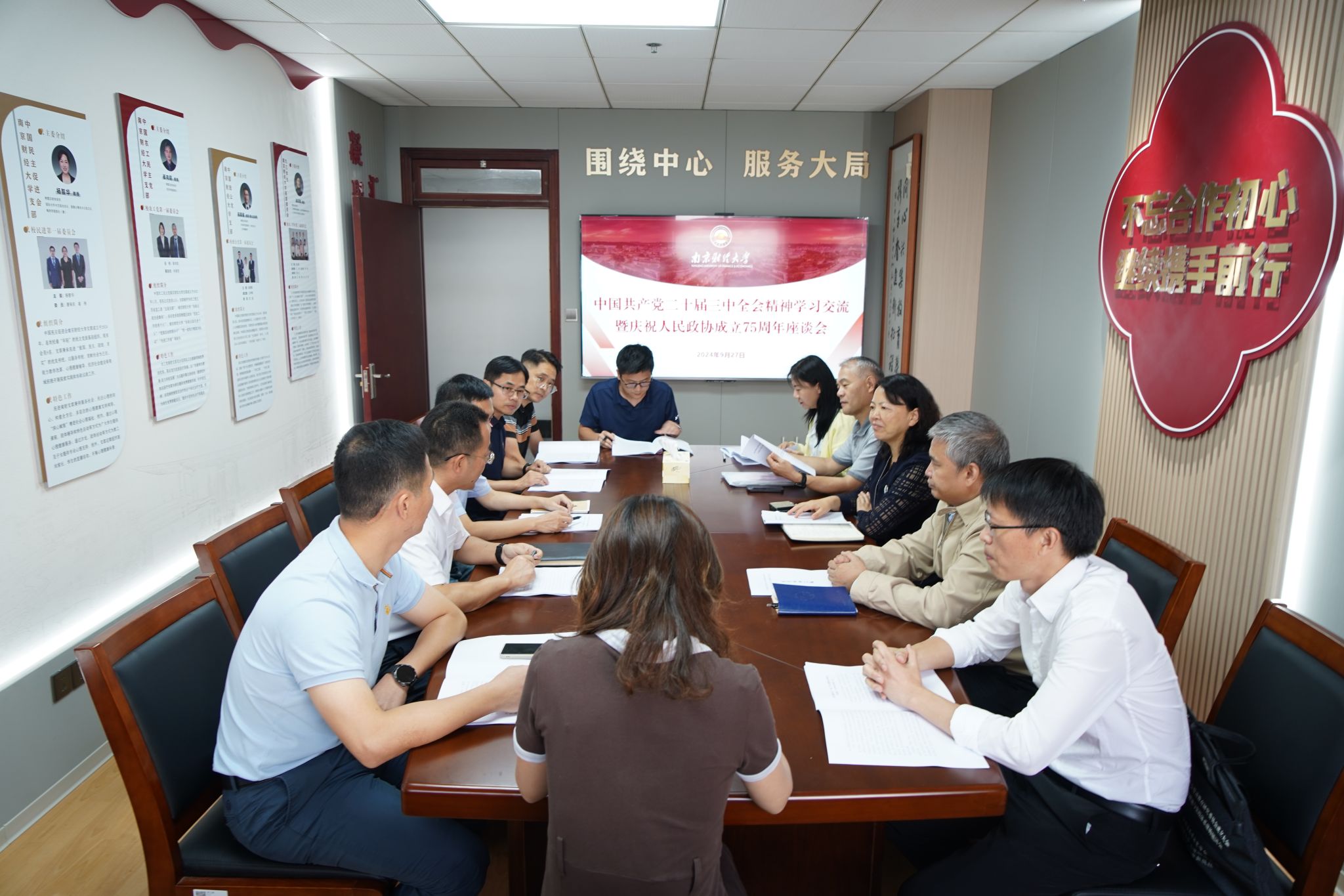 揭牌仪式后,bat365各民主党派、统战团体基层组织代表到布置一新的校“统战之家”召开中共二十届三中全会精神学习交流暨庆祝人民政协成立75周年座谈会。