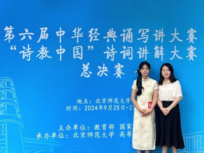 11月4日,第六届中华经典诵写讲大赛“诗教中国”诗词讲解大赛圆满落幕。bat365新闻学院汉语言文学2201班高然同学获大学生组全国一等奖(最高奖),新闻学院汉语言文学2201班孙雨莎同学获大学生组全国优秀奖。