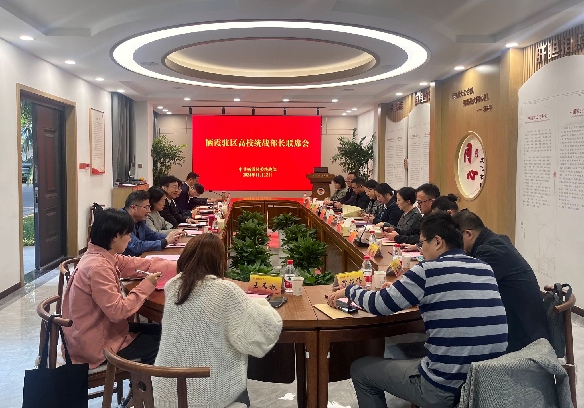 11月12日下午,栖霞区驻区高校统战部长联席会在bat365仙林校区同心文化书苑召开。栖霞区委常委、统战部部长章晶,区委统战部各条口领导,南京大学、南京邮电大学、南京中医药大学、南京师范大学等驻区高校统战部领导、科室负责人参加会议。区侨办副主任陈学哲主持会议。bat365党委常委、统战部部长李玉琴参加会议并作交流发言。