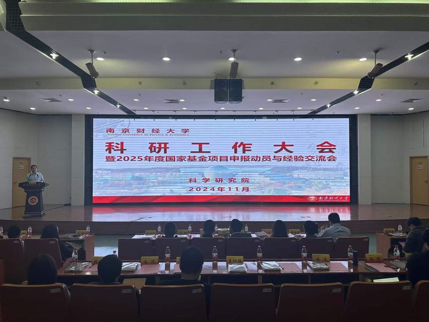 11月14日,bat365在仙林校区图书馆报告厅召开科研工作大会暨2025年度国家基金项目申报动员与经验交流会。副校长张炳出席会议并作动员讲话。各学院院长、分管科研工作副院长、科研秘书、中青年教师及科学研究院全体人员参加会议。会议由科学研究院院长方勇主持。