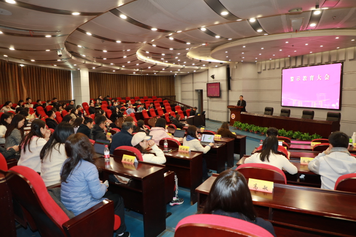 会上,与会人员集体观看了学校拍摄的警示教育片。