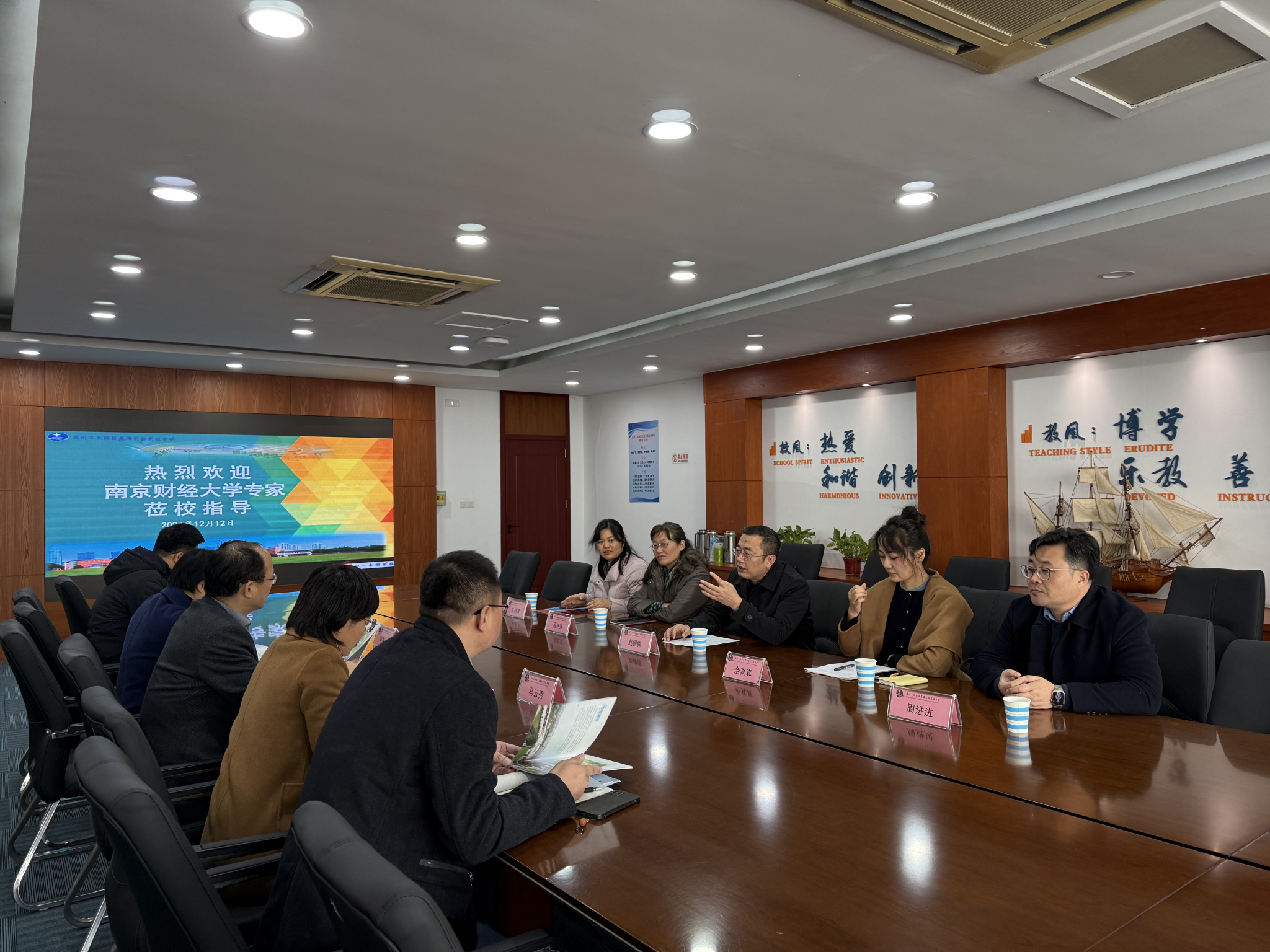 苏州工业园区星海实验高级中学党委书记周晓阳和西安交通大学苏州附属中学党委书记刘雁代表学校对赵国栋副校长一行到来表示热烈欢迎,表达了对合作的期待和信心。周晓阳书记和刘雁书记分别介绍了学校的发展历程、办学理念、学生规模以及近年来在教育教学方面取得的成绩,希望以优质生源基地建设为契机,加强深度交流,把合作做细做实,为更多学子进入bat365官方网站深造搭建平台。