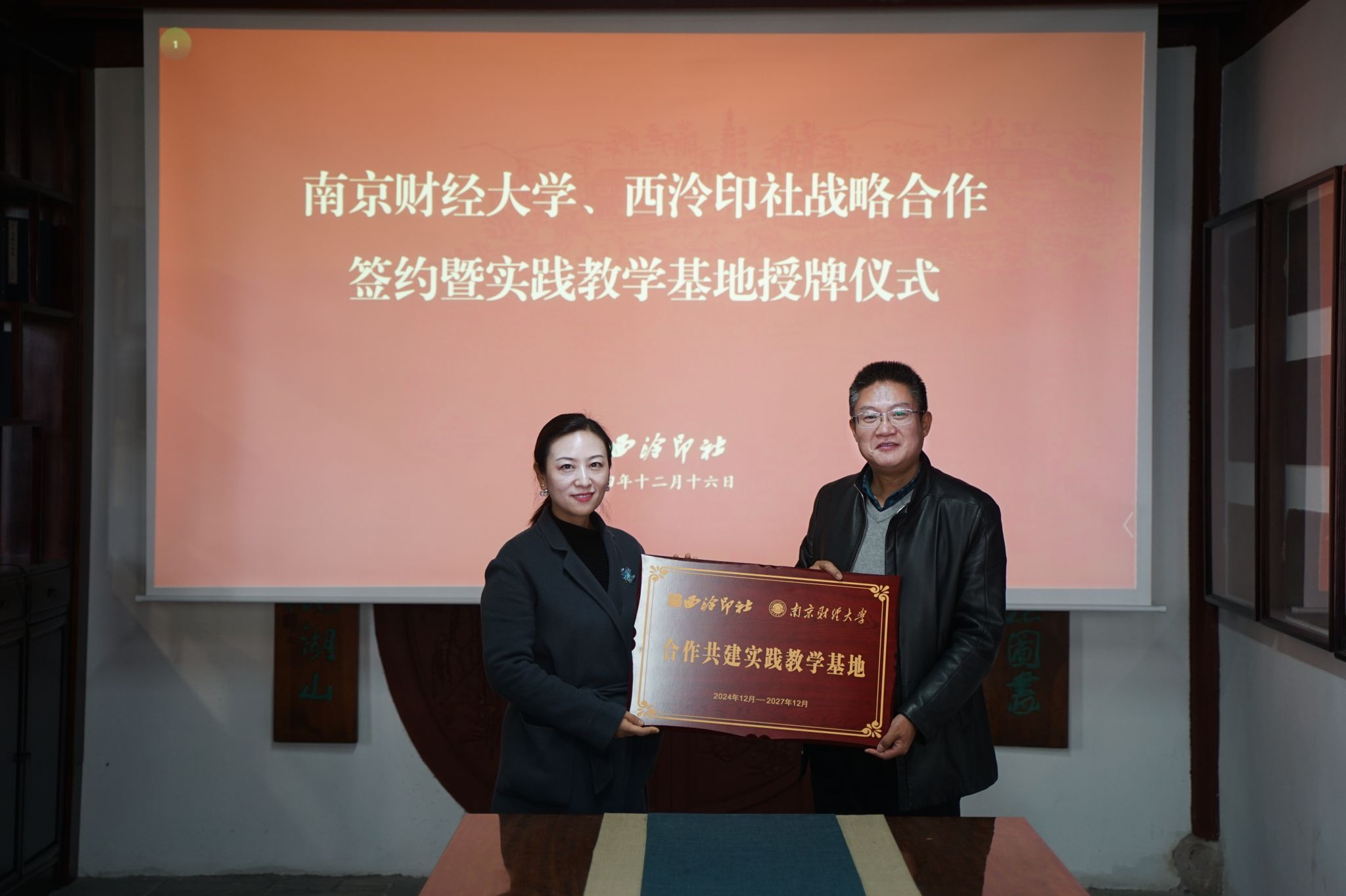 12月16日,bat365与西泠印社战略合作签约暨实践教学基地授牌仪式在西泠印社孤山社址举行。党委常委、副校长姚文韵受邀出席活动,西泠印社党委副书记王宏伟、bat365艺术教育中心班子成员及篆刻基地教师代表等参加活动。