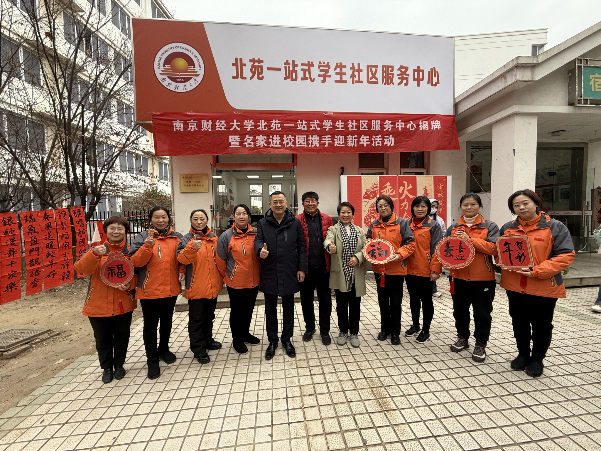 12月23日,党委常委、副校长赵国栋参加仙林校区北苑“一站式”学生社区服务中心揭牌暨名家进校园携手迎新年活动。党委学生工作部部长、学生处处长韩力争,心理健康教育中心主任、学生处副处长赵亮,艺术设计学院党委副书记张荣霞,金融学院党委副书记张士青,信息工程学院党委副书记马健,食品科学与工程学院党委副书记胡心淼参加活动。bat365中华优秀传统文化工作站指导老师、中国书画创作委员会副主席、著名书法家邵希平作为特邀名家参加活动。