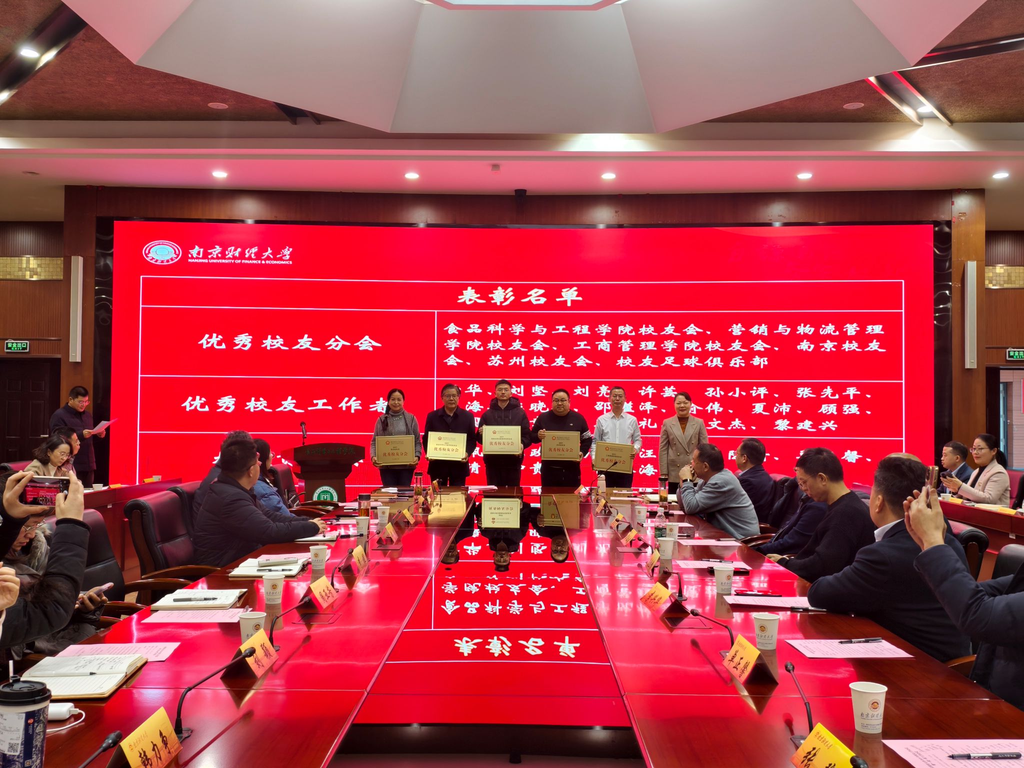 会议第一阶段为2024年校友工作会议。会议听取了《bat365官方网站校友会2024年工作报告》,表决通过《关于调整bat365官方网站校友会第三届理事会理事、常务理事的议案》,并对2024年“优秀校友分会”“优秀校友工作者”“校友贡献奖”进行表彰。李煜副校长为食品科学与工程学院校友会等6家优秀校友分会颁奖。校友总会副会长曹立峰、吴红斌、李兴华和常务理事潘玉堂,分别为计华等17名优秀校友工作者、王佩等10名校友贡献奖获得者颁奖。工商管理学院、南京校友会、工商管理学院校友会签署三方结对共建协议,开启学院和地方校友会、学院校友会友好合作、共同发展的新篇章。