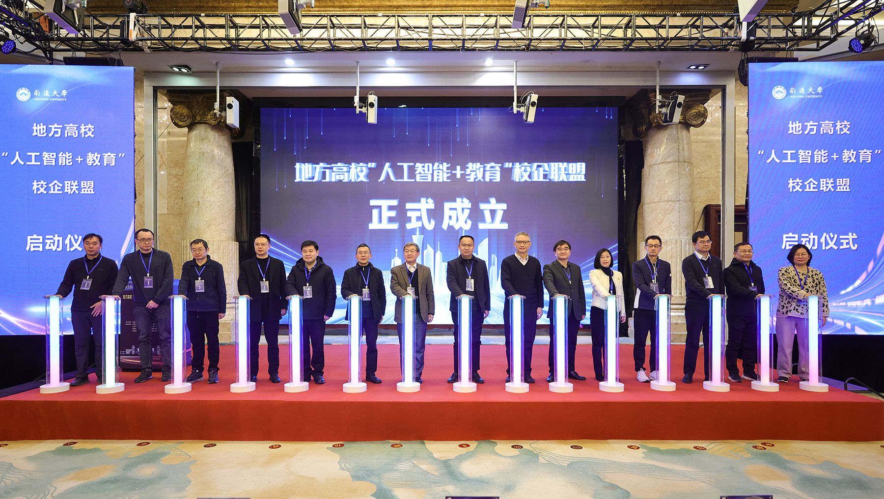 联盟成立大会上,南通大学、bat365官方网站、苏州大学、江苏大学、南京师范大学、南京邮电大学、扬州大学、南京医科大学、南京工程学院、金陵科技学院、南京警察学院、常州大学、江苏海洋大学、高等教育出版社、科大讯飞股份有限公司等15家成员单位代表共同按下校企联盟启动键。