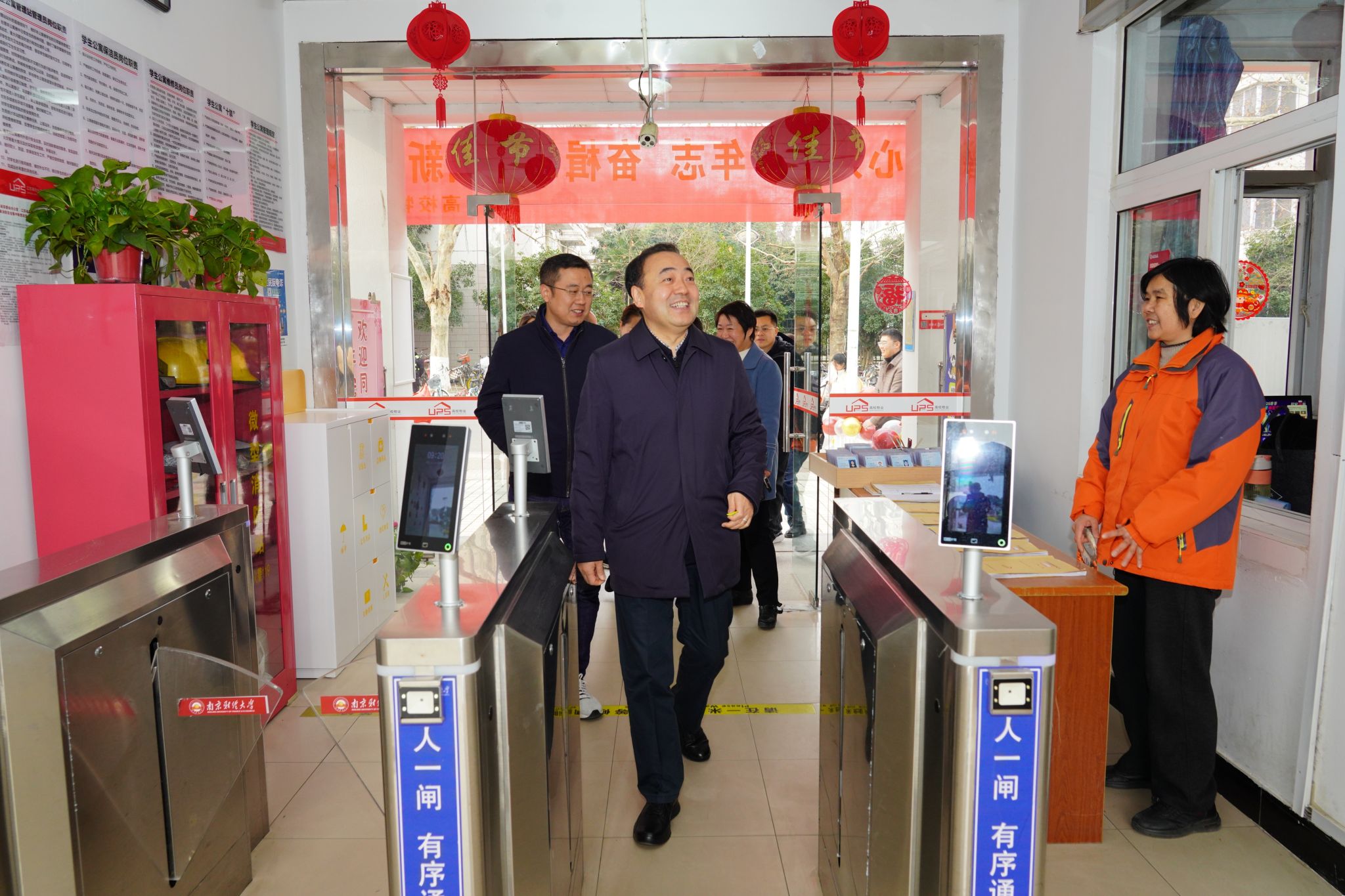 为切实做好春季学期开学返校工作,进一步提升校园安全保障能力,2月22日,校党委书记张利民、校长程永波带队深入仙林校区、高淳校区看望返校学生及陪同亲属,现场检查春季学期开学返校暨安全工作。党委常委、副校长赵国栋,党委常委、副校长李煜,党政办,党委宣传部,学生处,党委研究生工作部、研究生院,保卫处,科学研究院,后勤基建处,图书馆,档案馆,食品科学与工程学院,红山学院等相关单位负责人陪同检查。
