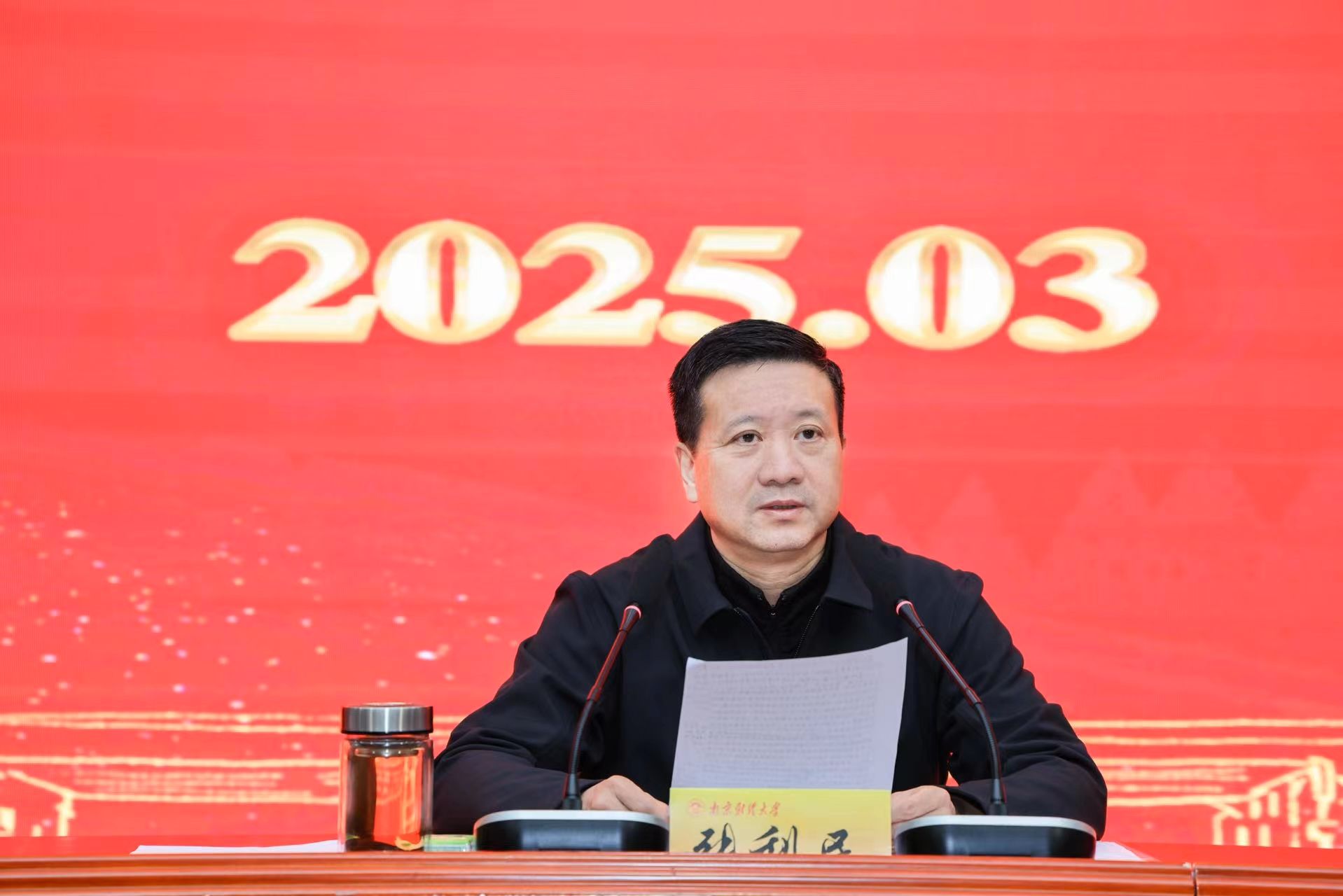 3月14日下午,bat365在仙林校区图书馆一楼报告厅召开2025年全国两会精神学习报告会。全体校领导,全体党委委员、纪委委员,全体中层干部,资产经营有限公司主要负责人,区级以上“两代表一委员”,民主党派代表,教职工代表,特约监察员代表参加会议。会议由校党委书记张利民主持。