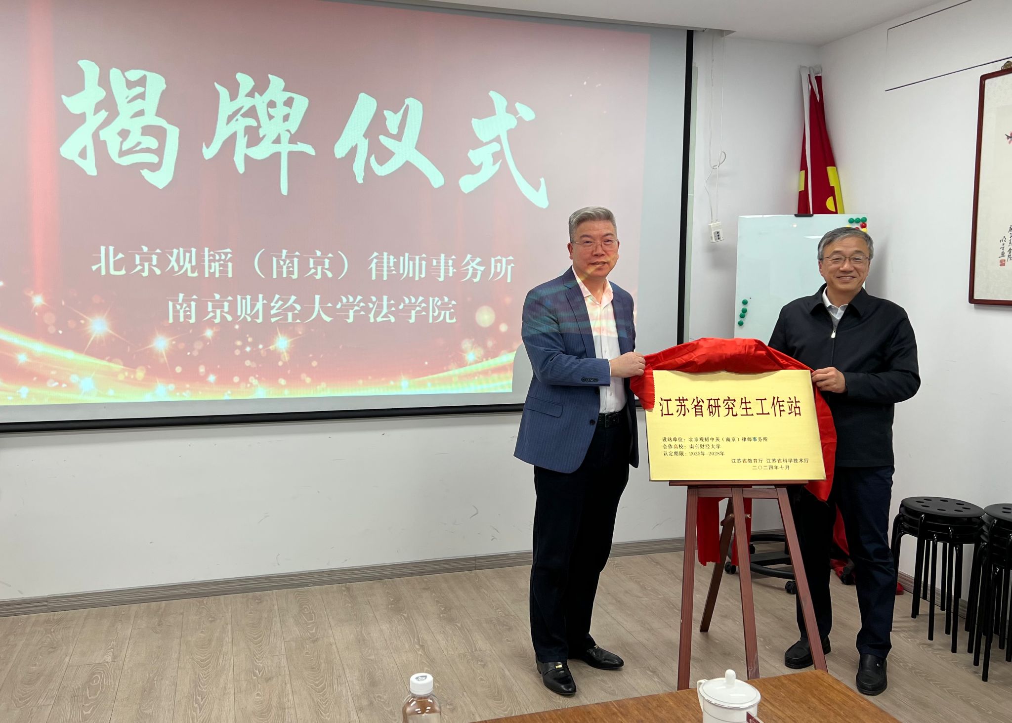3月18日,“法研启航,智汇未来”江苏省研究生工作站揭牌仪式在北京观韬(南京)律师事务所举办。党委常委、纪委书记李茜,北京观韬(南京)律师事务所主任来云龙,执行主任倪军、辛长洲,品牌委主任王政,外联委主任张方强,高级合伙人孙扬广等出席仪式,bat365法学院领导以及师生代表参加仪式。