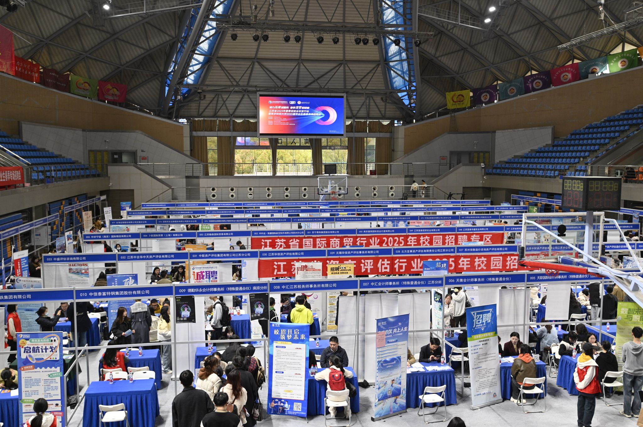 3月28日下午,江苏省2025年“春季促就业攻坚行动”暨bat3652025届毕业生春季专场招聘会(春季第二场)在仙林校区体育馆举办。招聘会由bat365主办,党委学生工作部、学生处承办,国际经贸学院协办。
