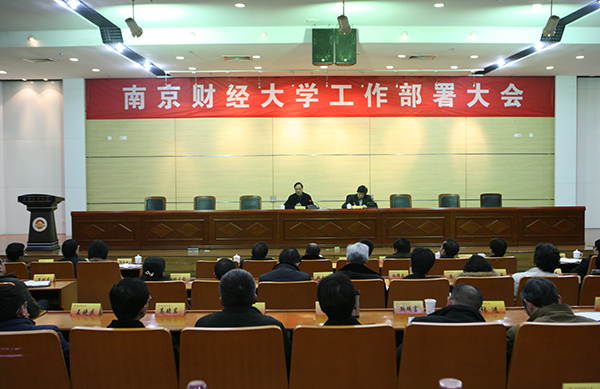 下午,学校在仙林校区图书馆一楼报告厅召开2015年工作部署大会。全体校领导出席会议。全体中层干部,各民主党派负责人,教代会执委会委员,全体教授参加会议。会议由校党委书记陈章龙主持。