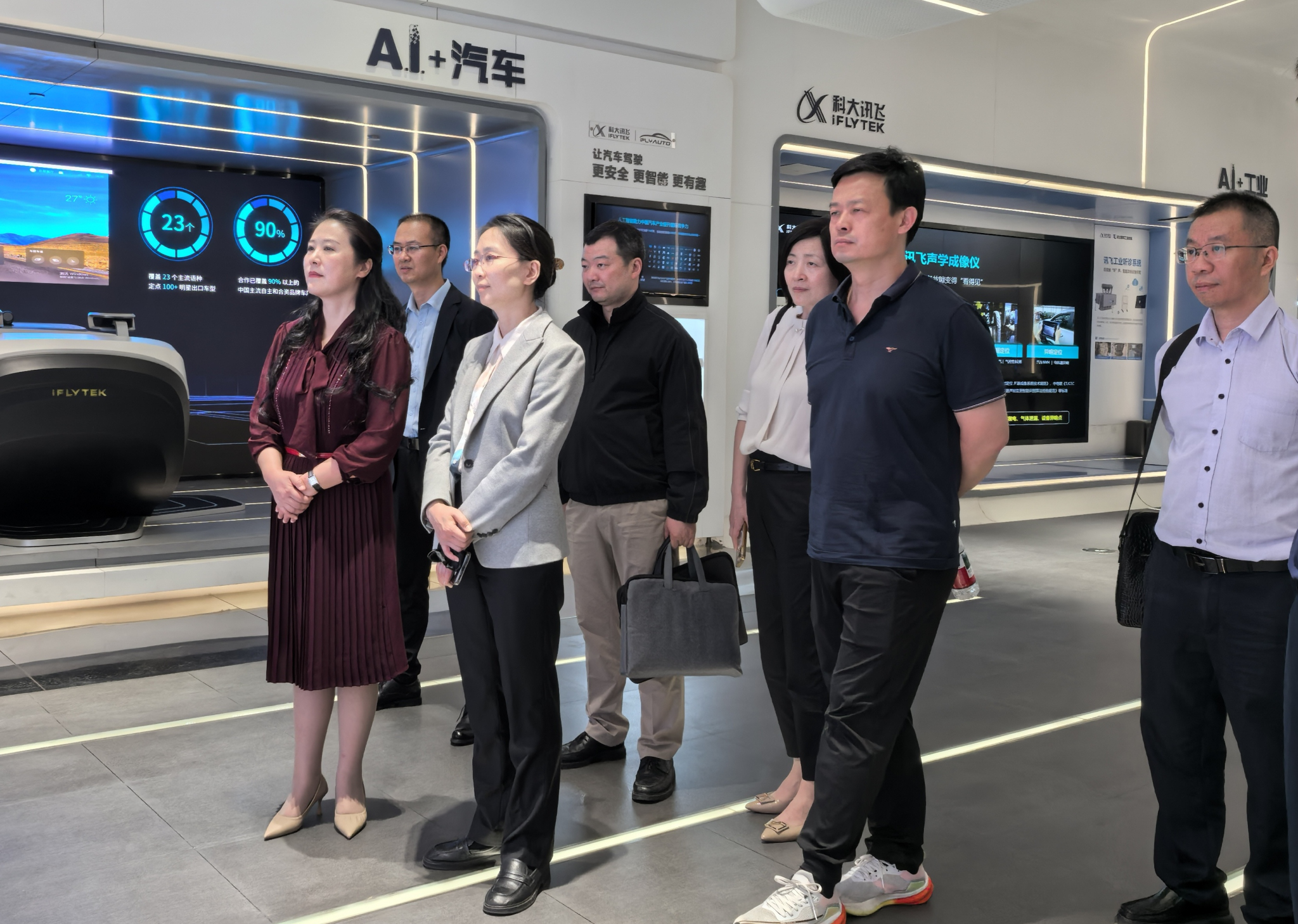 姚文韵副校长和刘衍民副校长一行参观了科大讯飞智能展厅,详细了解科大讯飞在“讯飞智作、AI听见、讯飞星火大模型、AI+教育”等模块的主要特色成果。