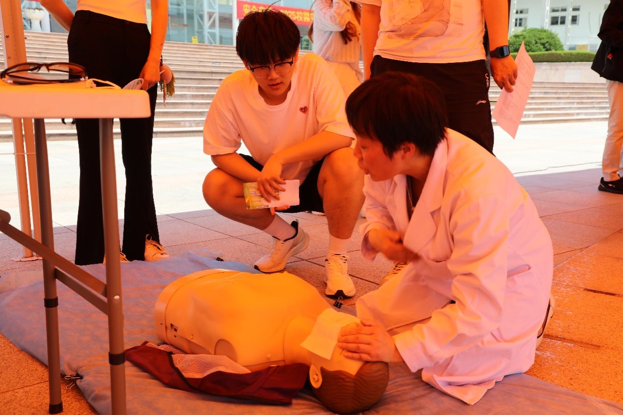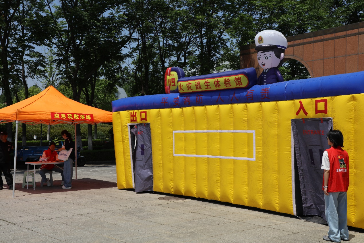 本次主题活动紧扣“大安全”理念,包含实训、演示和宣教三大板块,覆盖应急技能、消防安全、急救知识、网络安全、反电诈、政治安全、心理健康、食品安全等方面内容,共设置15个宣教与实训点,确保每位参与者都能在实践中学习,在学习中提升。实训环节,通过“逃生屋”模拟演练,同学们在逼真的环境中体验紧急疏散过程。在灭火器实操点,参训人员学习操作灭火器,为应对初期火灾打下坚实基础。在展示点现场,栖霞区消防救援大队搜救犬中队展示消防车装备,并安排了搜救犬搜救、服从指令演示。志愿者手把手教师生使用“校园安全隐患随手拍”小程序,鼓励师生发现并上报校园内的安全隐患,增强参与感和责任感,共同维护校园安全。