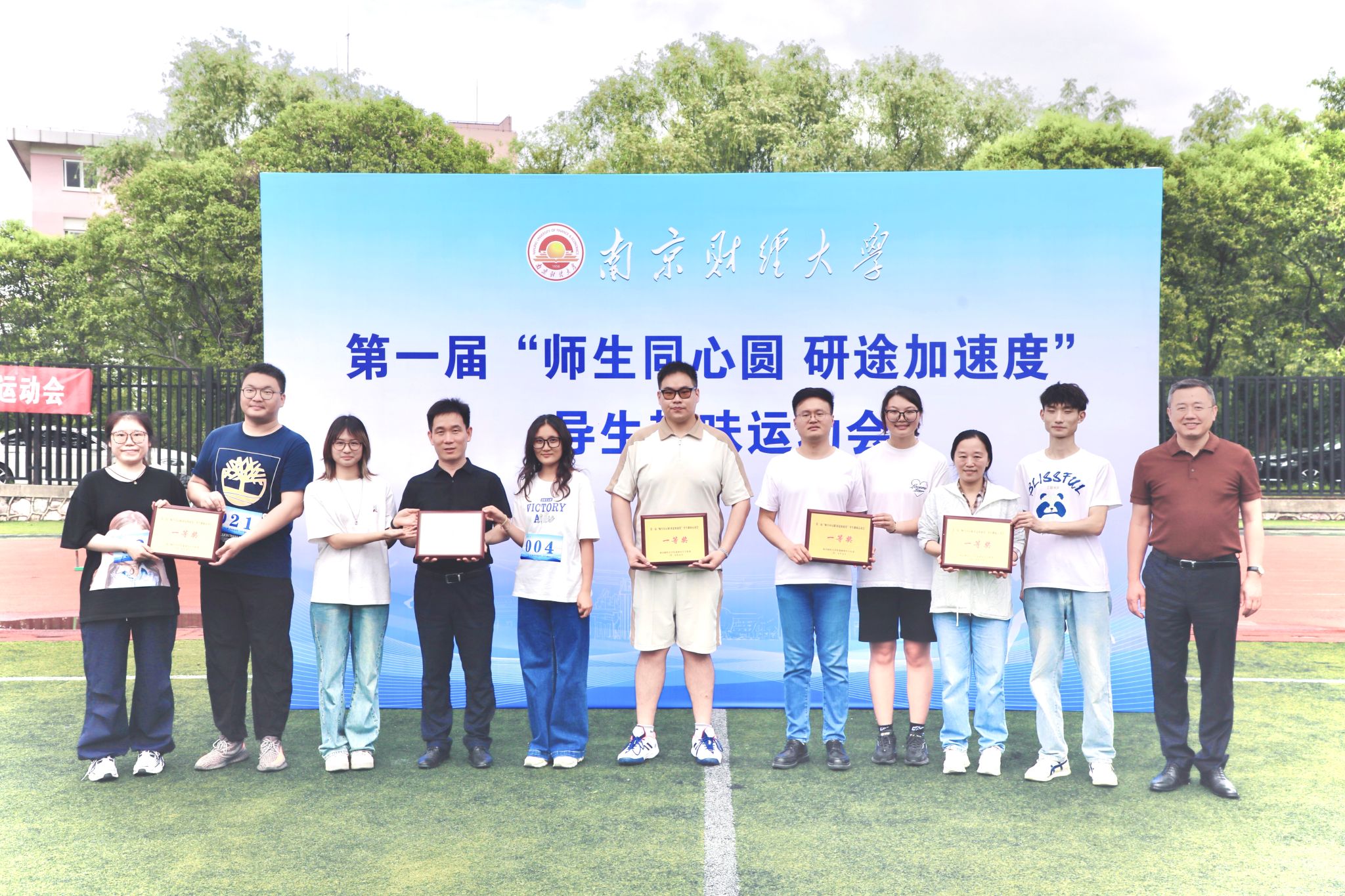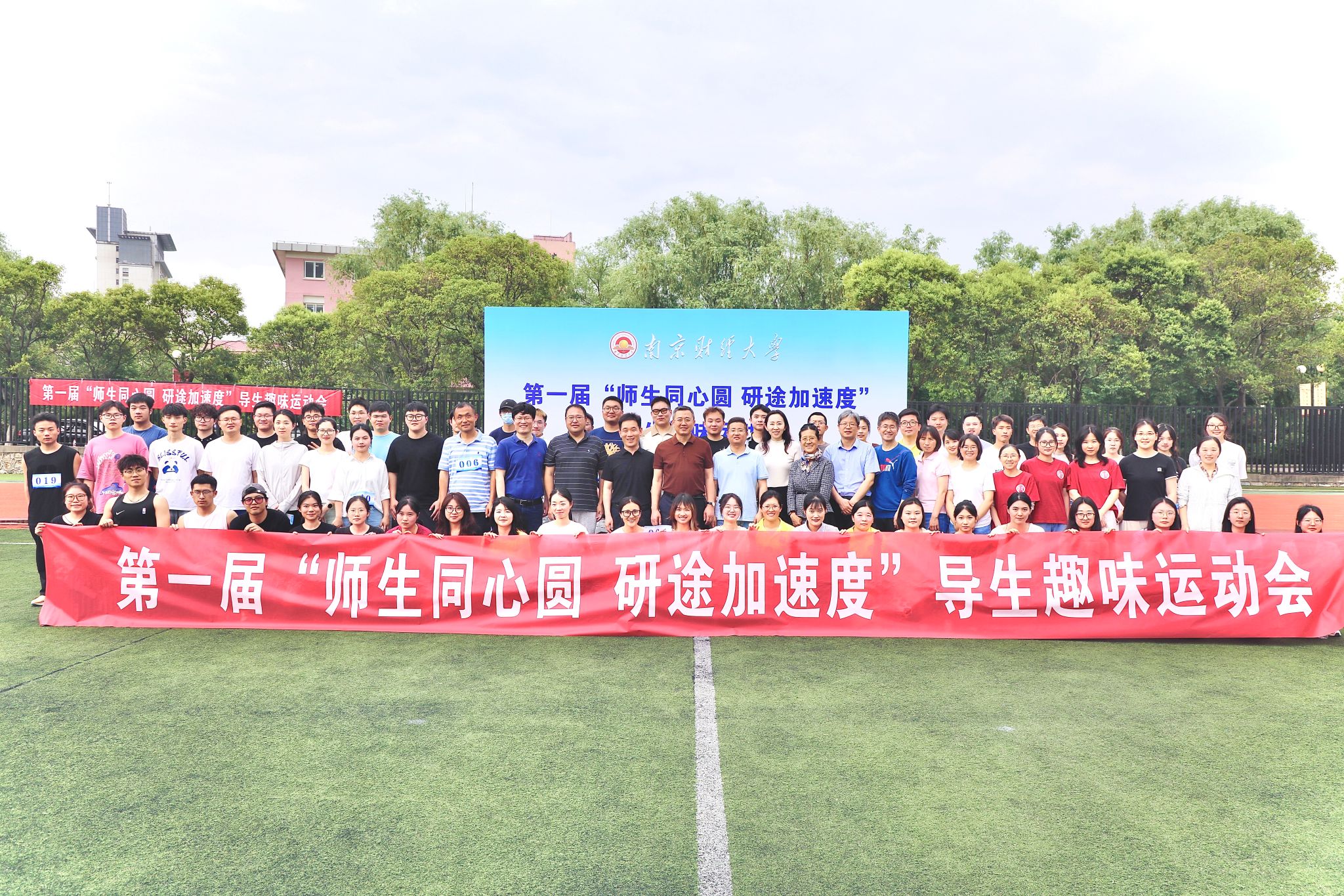 5月16日下午,bat365首届“师生同心圆 研途加速度”导生趣味运动会在仙林校区西苑田径场举行,来自14个培养单位的17支导师团队、2支研究生工作站指导教师团队、6支辅导员团队参加运动会。党委常委、副校长赵国栋出席运动会并为获奖团队颁奖。