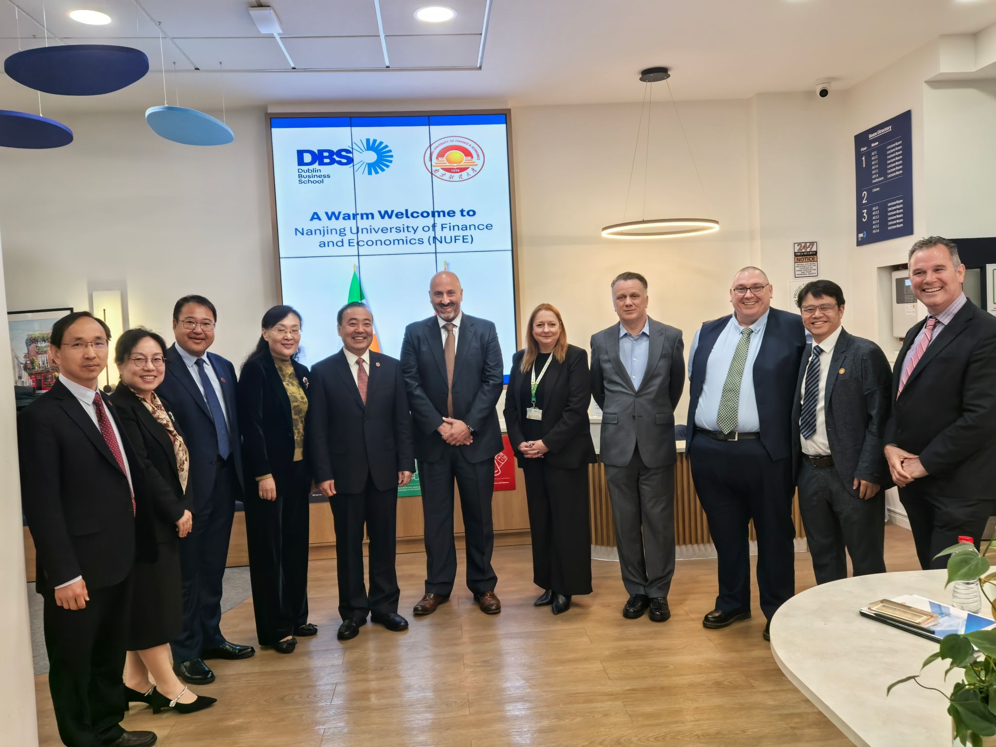 在都柏林理工大学访问期间,代表团与都柏林理工大学复苏委员会主席Dominic Dillane、国际项目专员Carol Cregg、爱尔兰工商联主席等相关人员进行了友好会谈。双方就共同推动财经与技术深度融合、促进高校与产业界协同发展、支持两校科研和人才交流等方面达成合作意向,商定共同签署合作备忘录,打造具有国际影响力的中爱高校合作样板。