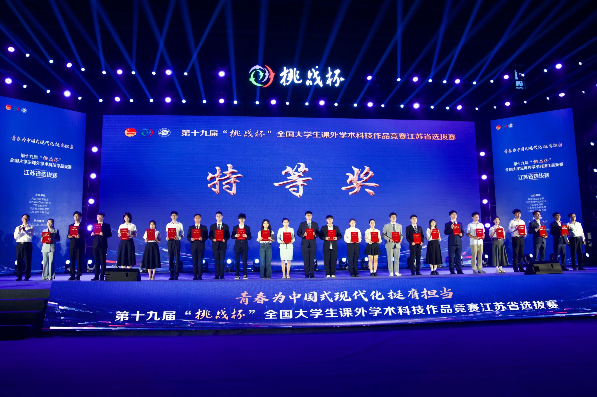 6月7日至9日,第十九届“挑战杯”全国大学生课外学术科技作品竞赛江苏省选拔赛决赛于南京信息工程大学举办。经网评初审、集中复审、现场答辩,bat365学子表现优异,脱颖而出,报送的8个项目全部获奖,其中特等奖3项并入围国赛,一等奖1项,bat365蝉联“优胜杯”,特等奖获奖数位居全省高校前列,并首次获“科技发明制作”类别最高奖项。