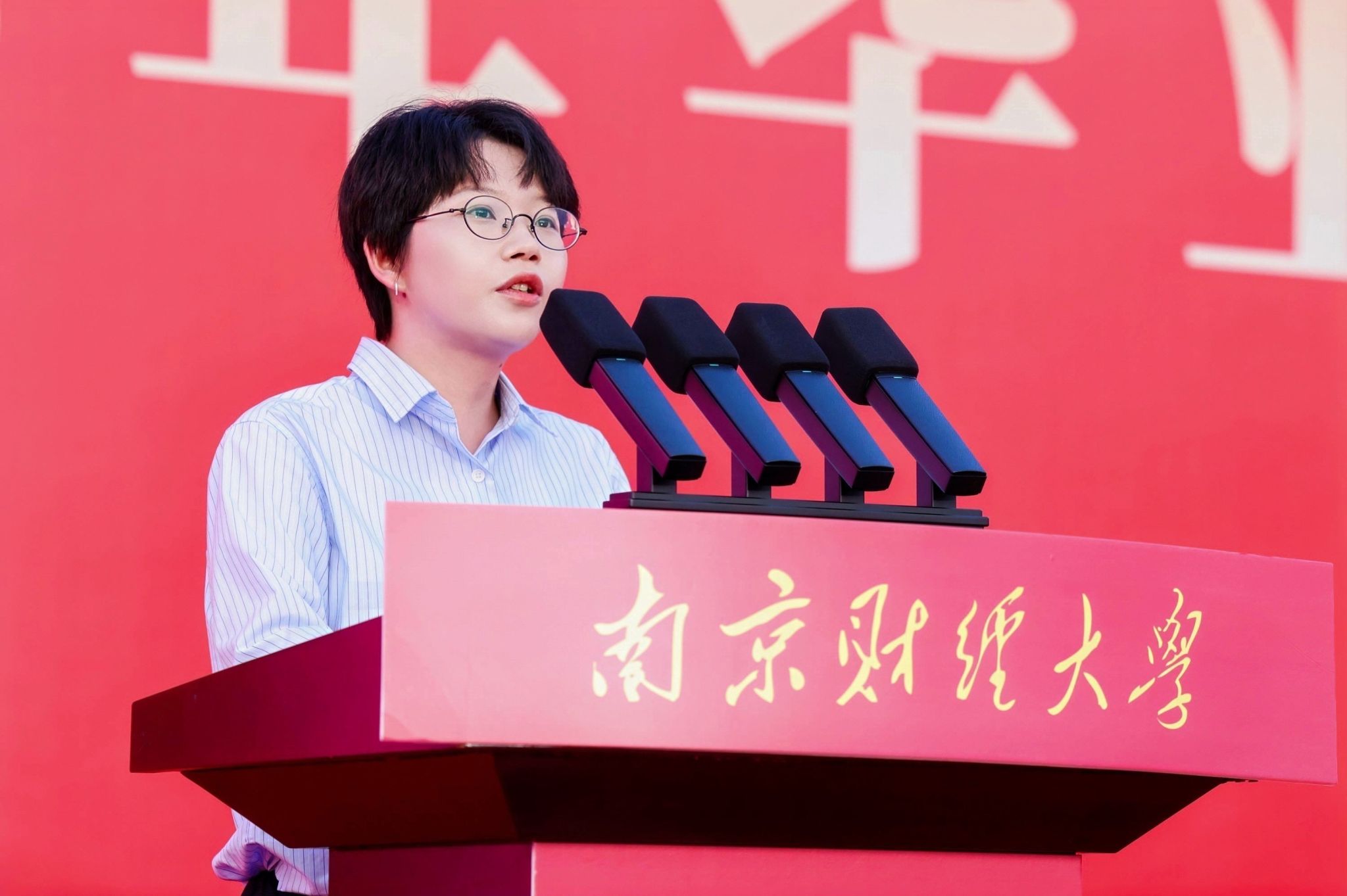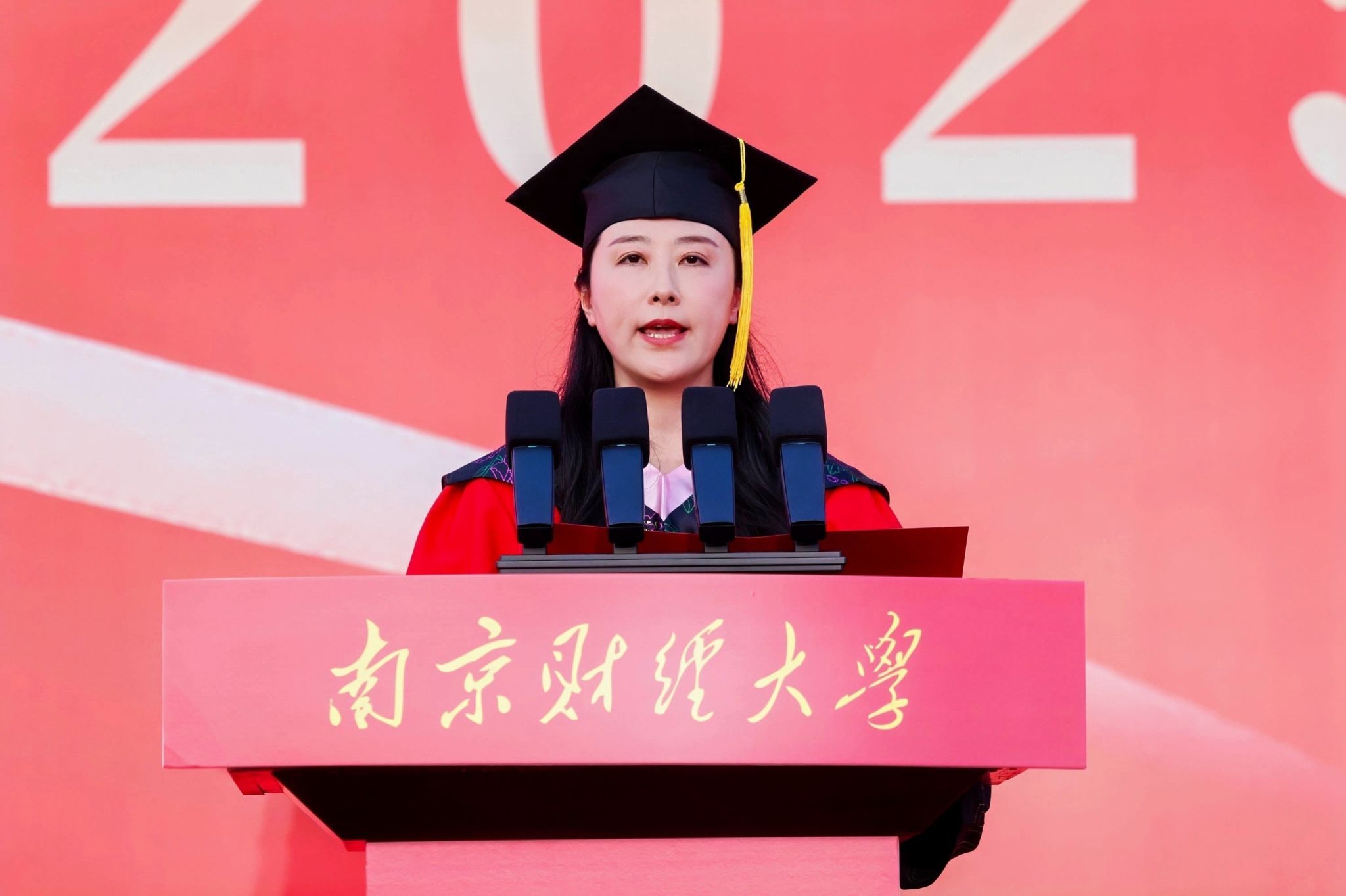 在校生代表、金融学院应用经济学专业2023级博士研究生倪梦娇同学发言,祝福毕业生以家国情怀为坐标,化鲲鹏击水,展长风破浪之姿。