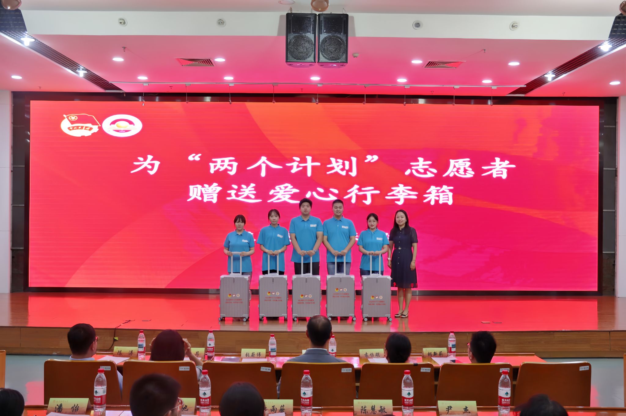 仪式上,校团委副书记陈涛介绍了bat3652025年暑期社会实践和“两个计划”志愿服务工作筹备情况。学生处副处长袁怡琨、教务处副处长赵昂分别宣读了《bat365官方网站2025年暑期社会实践活动校级立项名单》《bat365官方网站2025年“两个计划”志愿者预录取名单》。2022年江苏大学生志愿服务乡村振兴计划志愿者代表、bat3652022届毕业生高宸分享了从基层志愿者到基层公务员的经历与感悟。校团委书记张蔚伟为今年bat365“两个计划”志愿者代表赠送爱心行李箱。