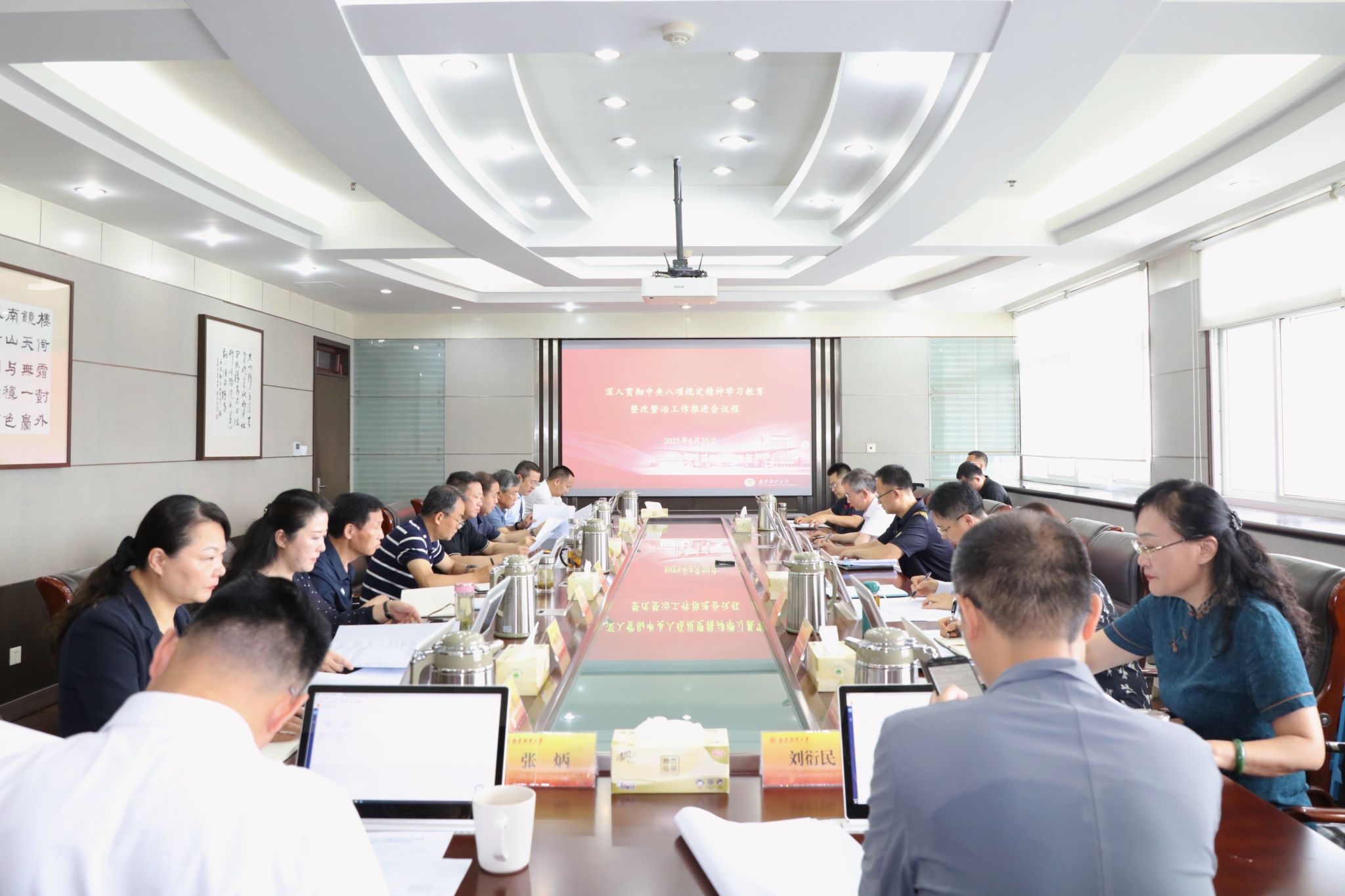 6月20日上午,bat365在仙林校区行政楼1009会议室召开深入贯彻中央八项规定精神学习教育整改整治工作推进会。校党委书记张利民主持会议并讲话,全体校领导,深入贯彻中央八项规定精神学习教育工作小组成员及综合组、宣传组、监督检查组、整改整治组组长参加会议。