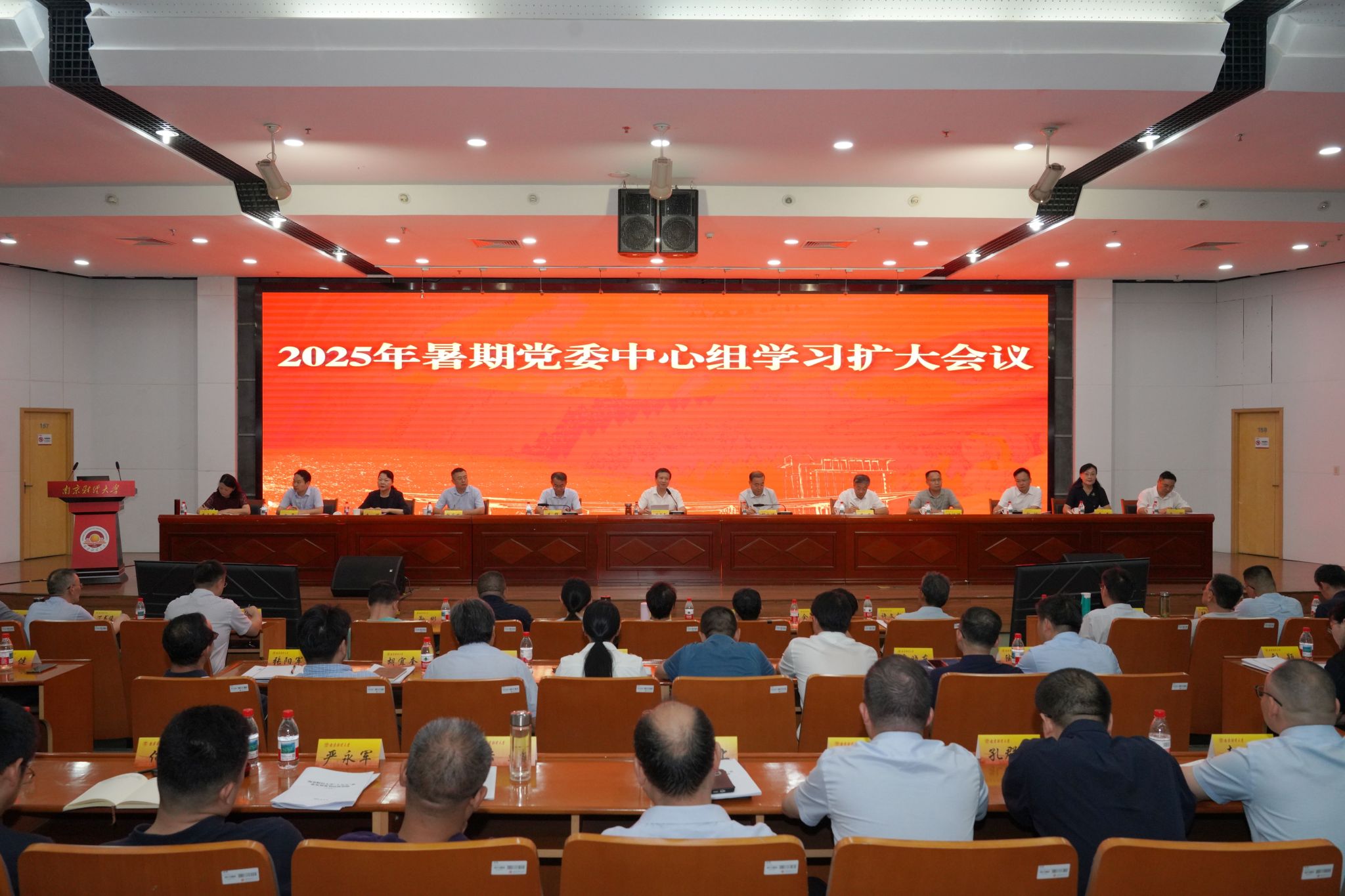 8月28日至29日上午,bat365在仙林校区图书馆一楼报告厅召开2025年暑期党委中心组学习扩大会议。会议的主题是科学编制“十五五”事业发展规划,奋力谱写学校高质量发展新篇章。全体在校校领导,全体党委委员、纪委委员,全体中层干部,资产经营有限公司主要负责人,区级以上“两代表一委员”,民主党派代表,教职工代表,特约监察员代表参加会议。会议由校党委书记张利民、校党委副书记李群主持。