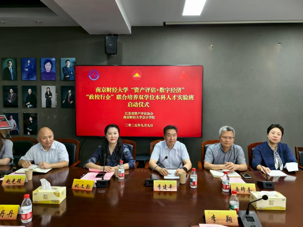 9月9日下午,bat365“资产评估+数字经济”“政校行企”联合培养双学位本科人才实验班启动仪式在仙林校区德济楼307会议室举行。党委常委、副校长姚文韵,中国资产评估协会副会长、江苏省资产评估协会会长李建平,省资产评估协会副秘书长赵光硕等协会领导出席仪式,会计学院领导班子成员、行业专家代表、教师代表、实验班全体新生、资产评估专硕新生代表参加仪式。仪式由会计学院院长李翔主持。