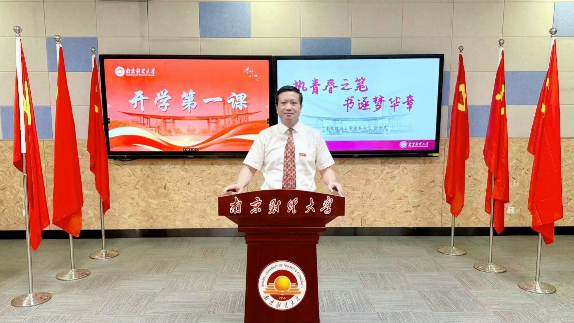 9月10日下午,校党委书记张利民以“执青春之笔,书逐梦华章”为题,为2025级全体新生讲授“开学第一课”,4540名2025级本科生、研究生以线上线下相结合视频微课方式听课。