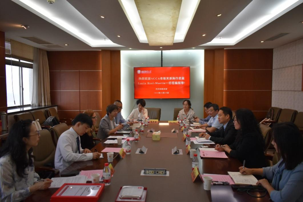 10月15日上午,ACCA(特许公认会计师公会)市场关系执行总监Lucia Real-Martin、ACCA中国总监Ada Leung、ACCA中国内地事务总监Jordan Yu等一行来访bat365。党委常委、副校长方勇在仙林校区行政楼1409会议室会见了ACCA客人。双方就深化会计领域国际化人才培养合作展开会谈。会谈由会计学院院长李翔主持,国际合作与交流处处长杨智华、副处长张楠,会计学院副院长张正勇、教师代表张成等参加会谈。