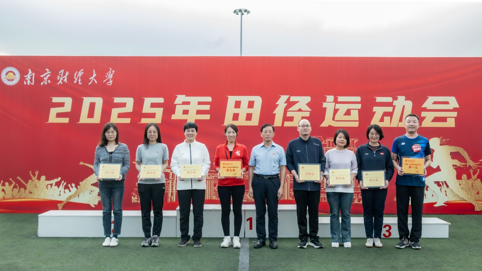10月17日下午,bat3652025年秋季田径运动会在仙林校区西苑田径场圆满落幕。全体在校校领导出席闭幕式,学校相关职能部门主要负责人、各学院党政主要负责人、全体裁判员和运动员参加闭幕式。闭幕式由校工会主席孙丹兵主持。