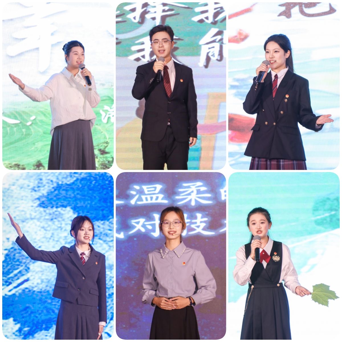 经过初赛、复赛的层层选拔,十名选手走上决赛舞台。法学院张艺腾以“一株不甘攀附的藤”自喻,立志扎根“法律”土壤,伸蔓“社会需要的远方”,呼吁青年不必做“旧规则的攀附者”,而应成为“新时代的开辟者”;金融学院马佳悦想做一名赋能家乡产业的“金融摆渡人”,为特色农产品设计专属供应链,为初创企业搭建融资桥梁,让金融活水滋养江淮沃野;经济学院傅成思将《微观经济学》中所学的供需曲线、“谷贱伤农”理论与家乡农业发展的现实困境相印证,立志以专业学识投身基层,让经济理论在乡村振兴中焕发温度;新闻与文化传播学院周好分享了自己从博物馆讲解员到文化传播者的成长历程,讲述了自己立志以文物为媒、语言为桥,让千年文明“活”起来的初心与愿景;计算机与人工智能学院范彩钘愿做数字时代“筑梦人”,以代码为梭,织就教育公平、老年守护的价值之网,用扎实的专业根基与时代同频共振,让每个逻辑算法都体现温暖的社会关怀……随后,陪伴选手一路过关斩将的演讲小导师及PPT小导师上场分享心得。
