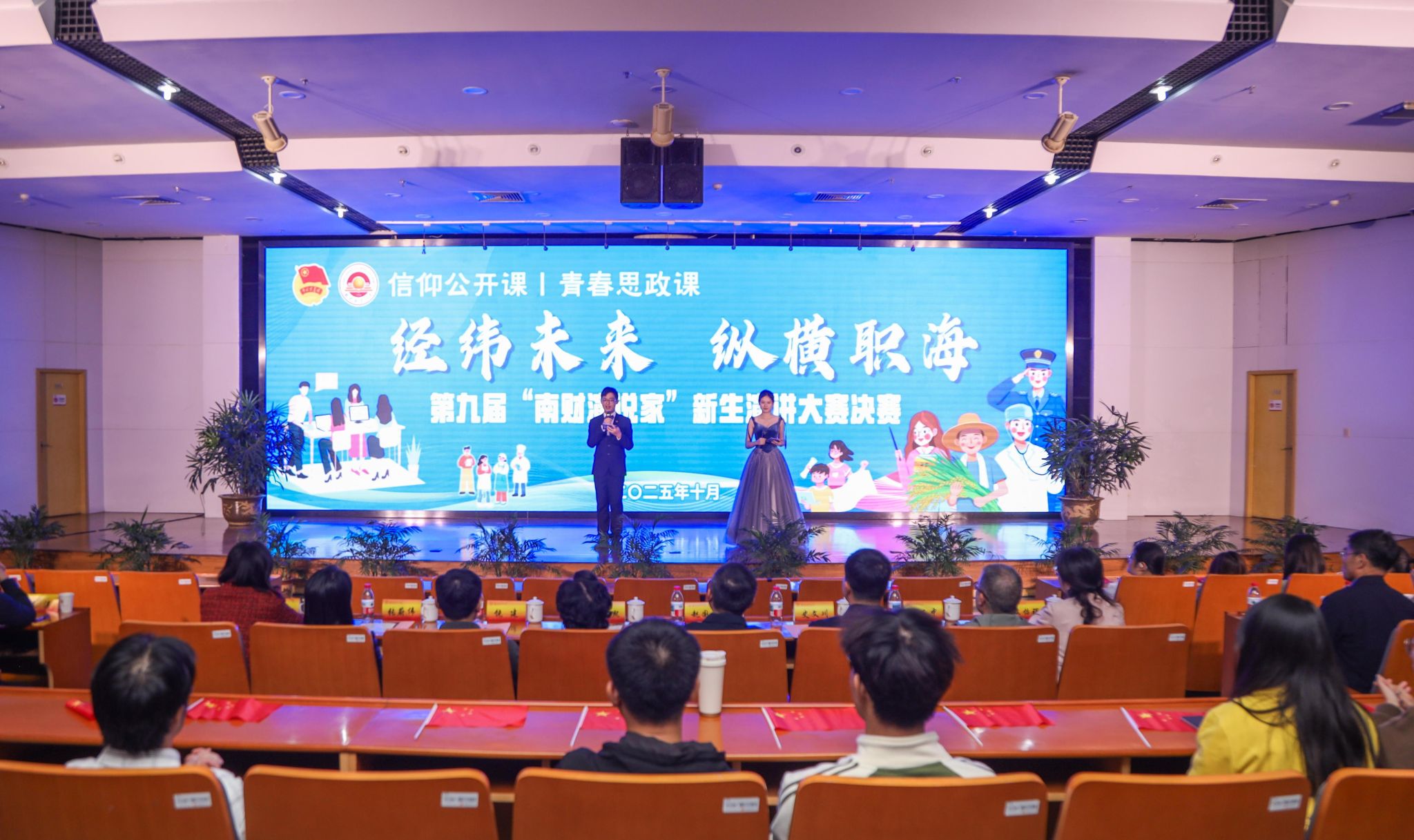 据悉,本次比赛由校团委、校关工委主办,旨在引导青年树立正确就业观,激励新生以声为媒传递职业理想、以言为炬彰显时代担当。自9月启动以来,得到新生的广泛关注,300余名新生登上舞台一展风采。大赛选拔出的32名“百舸青年宣讲团”宣讲员将走进班级、团支部、中小学等开展分众式宣讲,为持续讲好南财故事、时代故事、中国故事注入青春动能。