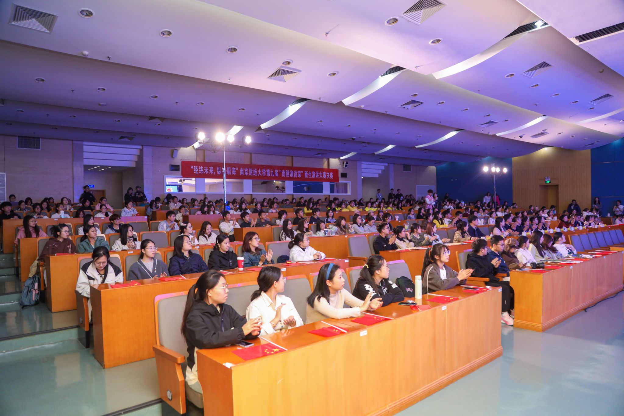 10月22日晚,“经纬未来 纵横职海”第九届“南财演说家”新生演讲大赛决赛在仙林校区图书馆报告厅举行。党委常委、副校长赵国栋,校关工委常务副主任程光熙出席活动。南京中医药大学团委书记史文川,南京信息工程大学团委副书记(主持工作)饶建,bat365团委书记张蔚伟、离退休党委书记杨玉中、党委宣传部副部长龚莉红、党委学生工作部副部长袁怡琨、离退休工作处副处长潘春艳、校团委全体人员、各学院分团委负责老师和新生代表参加活动。