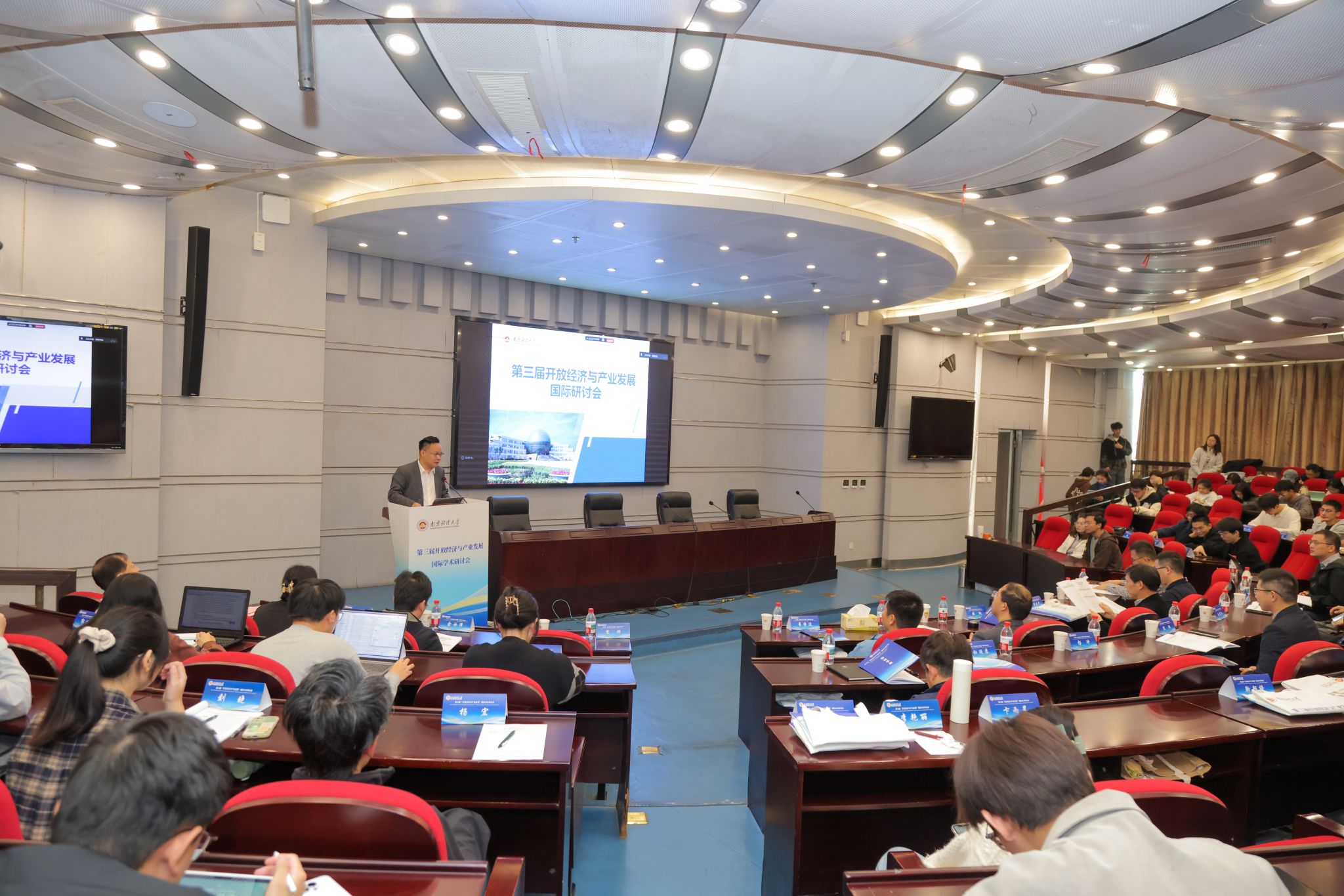 10月25日,第三届“开放经济与产业发展”国际学术研讨会在bat365仙林校区举办。研讨会由国际经贸学院、现代服务业协同创新中心主办,来自日本神户大学、复旦大学、中国人民大学、东南大学、南京师范大学、昆山杜克大学、东北财经大学、南京审计大学、安徽财经大学等国内外高校的众多知名学者齐聚一堂,围绕“开放经济与产业发展”主题展开深入交流与探讨。