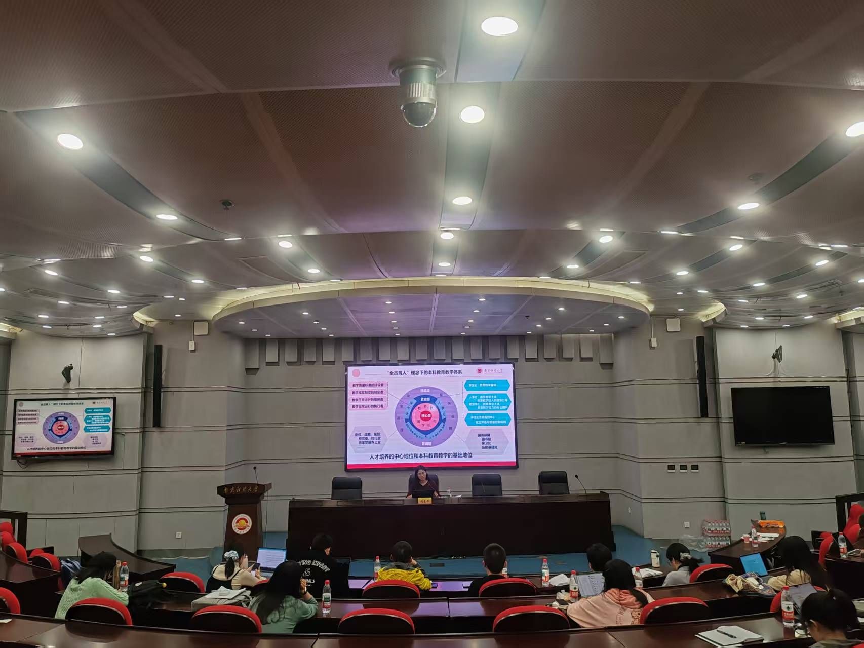 江苏省教学名师、bat365杨智华教授作题为“做好教学工作的方法”的讲座。她结合全国高校教师教学创新大赛获奖课程的实践经验,系统阐述了智慧课堂构建路径,展示了从熟悉教学到热爱教学再到教学创新的跨越。校教学督导程瑶教授作题为“教学核心要求与教学规范解读”的讲座,介绍了bat365课堂教学、考试考核、实践教学、毕业论文(设计)等工作的规范和要求。