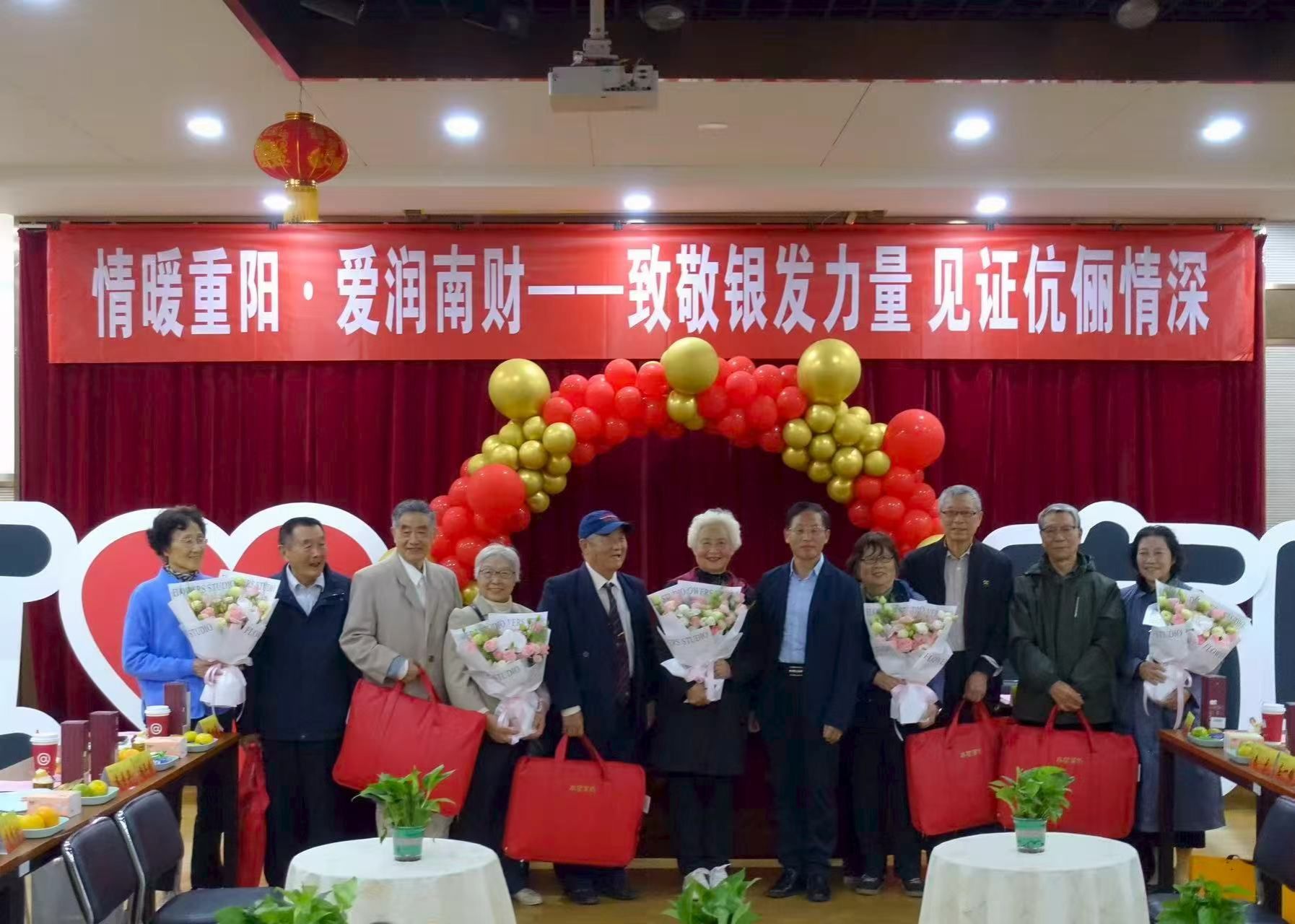 10月28日下午,bat365在福建路校区老同志活动中心多功能厅举办“情暖重阳·爱润南财——致敬银发力量 见证伉俪情深”重阳节集体祝寿活动,为年届70、80、90及以上的寿星们集体祝寿,为相濡以沫五十余载的双职工伉俪共贺美满佳缘。党委常委、副校长黄步龙出席活动并致辞,副校级老领导王水汀、老寿星代表及银发伉俪代表齐聚一堂,共同追忆校园往昔岁月,畅叙深厚同事情谊。活动由离退休工作处处长唐习华主持。