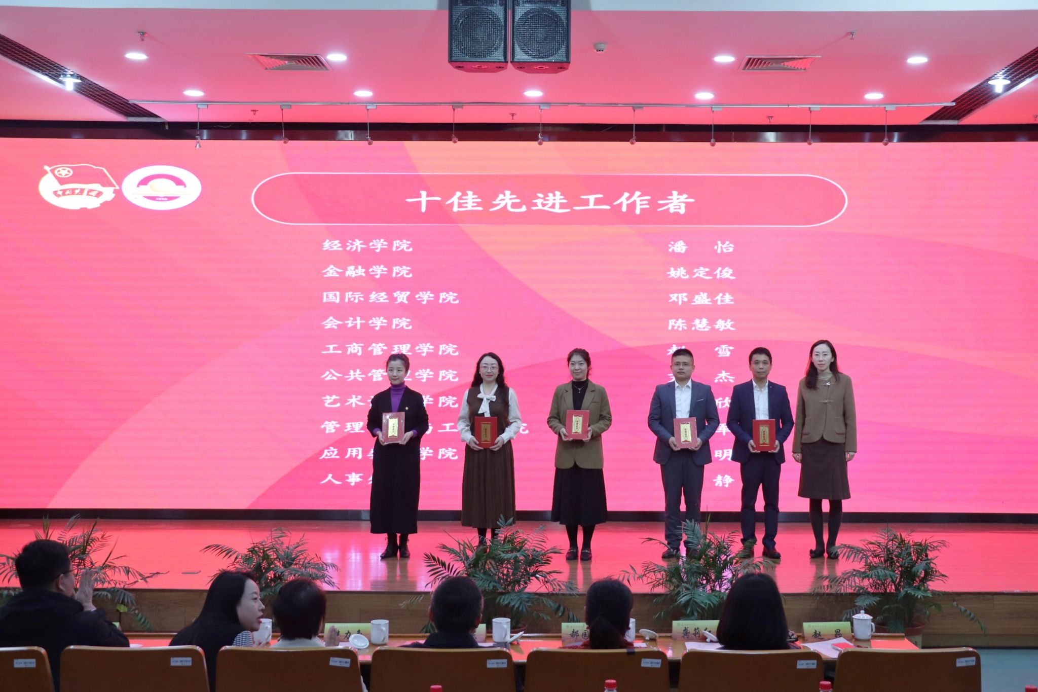 校团委书记张蔚伟宣读《关于表彰bat365官方网站2025年暑期文化科技卫生“三下乡”社会实践活动先进集体和先进个人的决定》。经济学院、金融学院、国际经贸学院、会计学院、公共管理学院获评“先进单位”;财政与税务学院、工商管理学院、应用数学学院、管理科学与工程学院、新闻与文化传播学院获“宣传成果奖”;经济学院潘怡等10位老师获评“十佳先进工作者”;财政与税务学院“星火传承,津门红钥”团队等10支社会实践团队获评“十佳团队”;金融学院高欣语等10名同学获评“十佳个人”;经济学院《智水润蟹乡,数字促振兴:数字技术如何照亮五类养殖主体的“新渔路”——基于四省10市的调研》等10篇调研报告获评“十佳调研报告”;金融学院狄锦文等10名同学获评“十佳通讯员”。