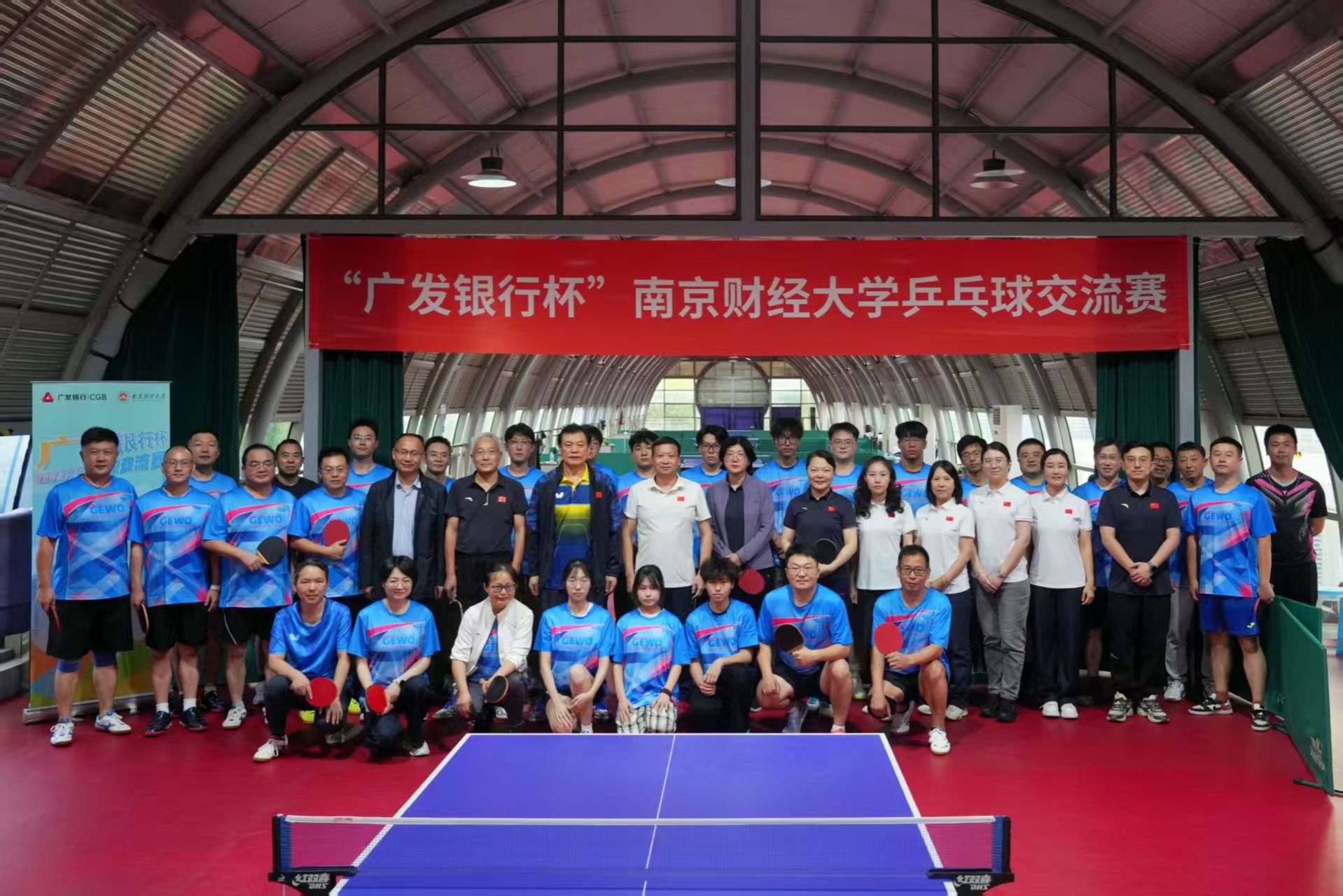 11月1日下午,由校工会、体育部主办,教职工乒乓球协会承办的“广发银行杯”乒乓球交流赛在仙林校区体育馆二楼乒乓球室举行。bat365教职工乒乓球俱乐部会员、广发银行球友、校友及学生代表组成8支队伍同台竞技。校党委书记张利民,党委常委、副校长黄步龙,党委常委、副校长叶林祥,党委常委、副校长李煜,原党委副书记(正校级)、校教职工乒乓球协会主席温潘亚,原党委常委、副校长邱伟芬,原党委常委、副校长张为付,广发银行南京湖南路支行行长朱巍,广发银行南京分行公司金融部总经理袁琳琳、运营管理部总经理樊娟、金融部副总经理高涵,广发银行湖南路支行副行长吴炀出席活动。
